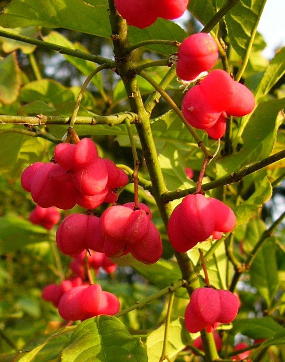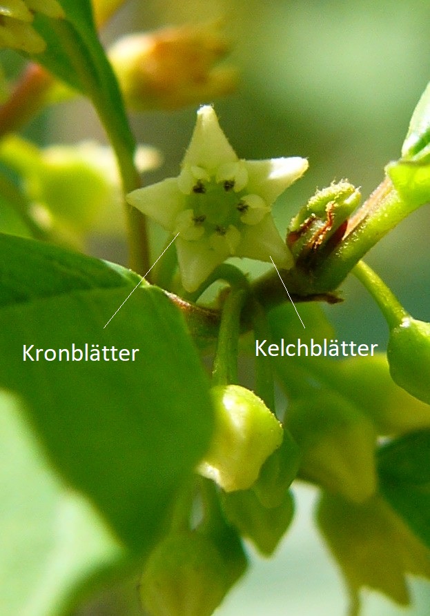 länger als die Kelchblattzipfel Früchte haben die Form eines Pfaffenhütchens > Euonymus (Pfaffenhütchen)