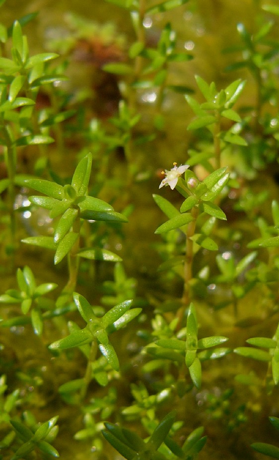 farbigen Kronblättern und grünem Kelch, aus dem Wasser ragend > Dickblatt (Crassula) |