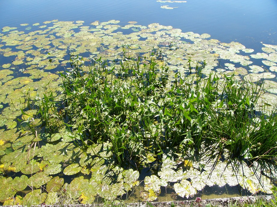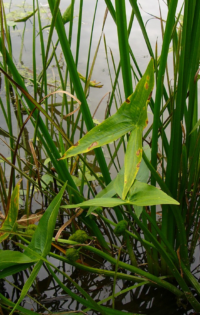 Obere Blätter aus dem Wasser ragend, pfeilförmig,