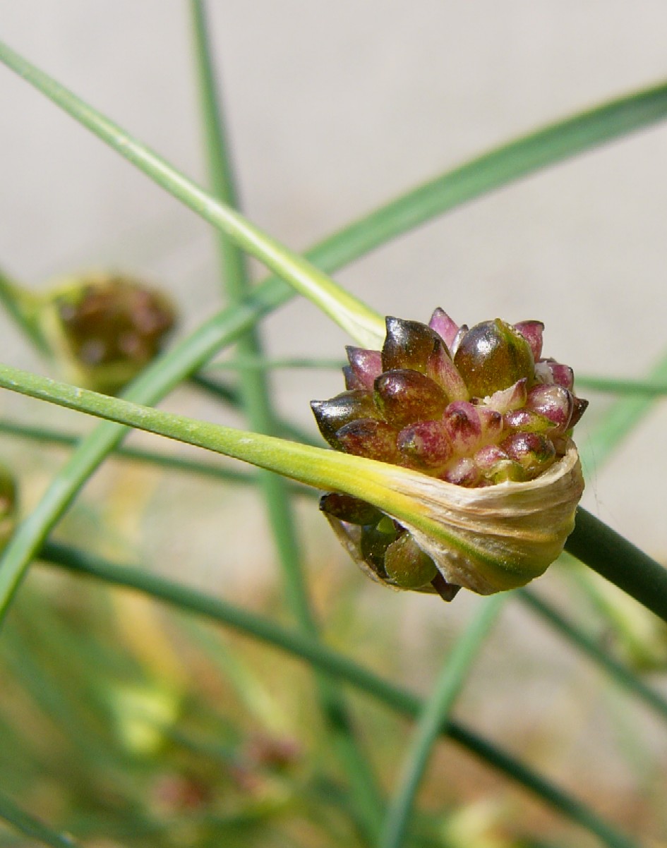 Allium - Blütenstand mit Bulbillen, Blüten breit glockig, bräunlich oder grünlich überlaufen