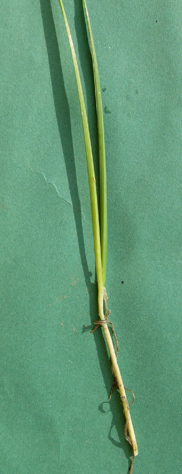 Zwiebeln zylindrisch, zu mehreren einem Rhizom aufsitzend
