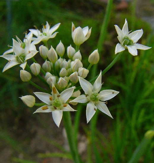 Bulbillen, Blüten weiß, zu 20 - 40 in Schirmdolden, Blätter 2 - 9 mm breit