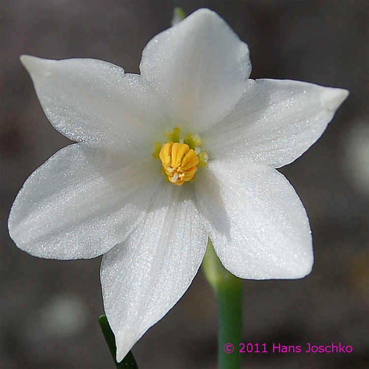 Perigonblätter 8 - 11 mm, weiß, die äußeren 3 Perigonblätter nicht zugespitzt