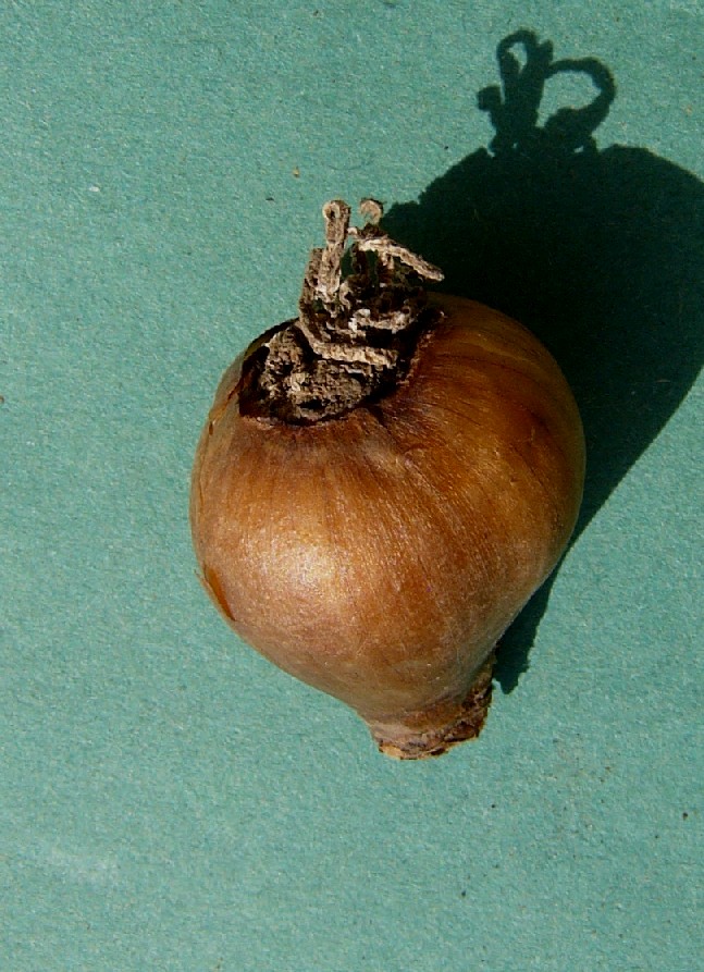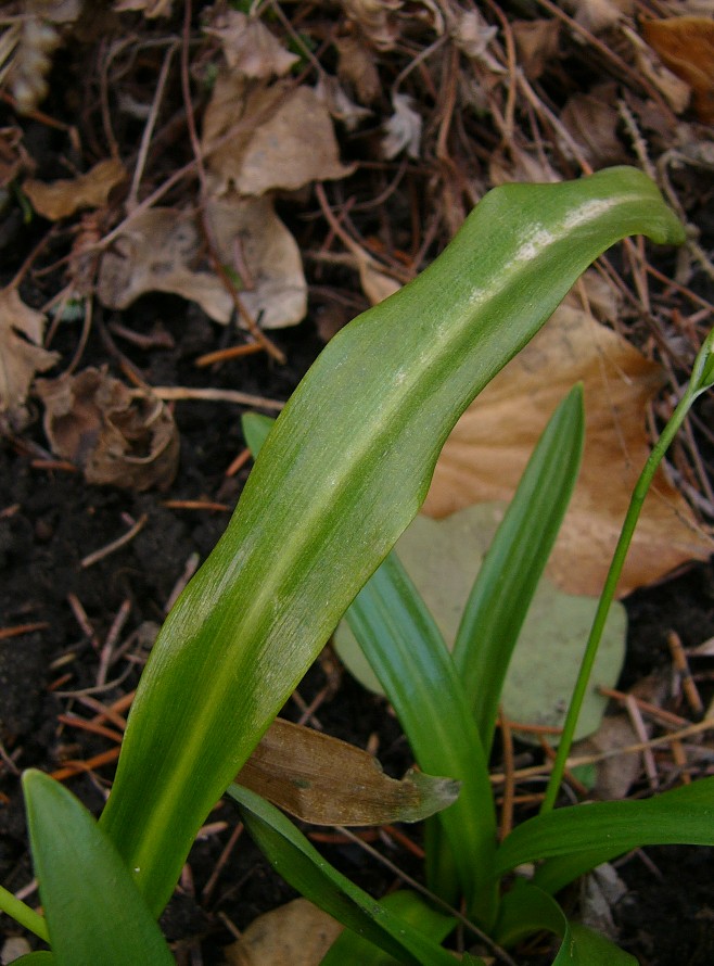 oder 2- teilig, höchstens halb so lang wie die inneren Perigonblätter Blätter vor der Entfaltung eingerollt Zwiebel 2 - 2,5 cm im Durchmesser
