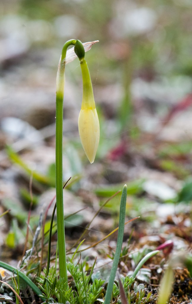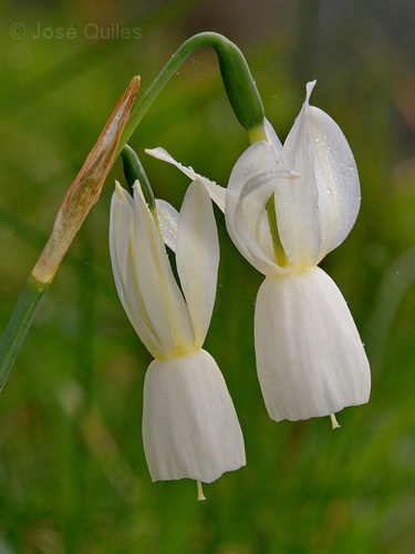 Blüten weiß, cremefarben oder schwefelgelb, ca. 1,5 cm im Durchmesser, nickend, Perigonzipfel nach hinten zurückgeschlagen