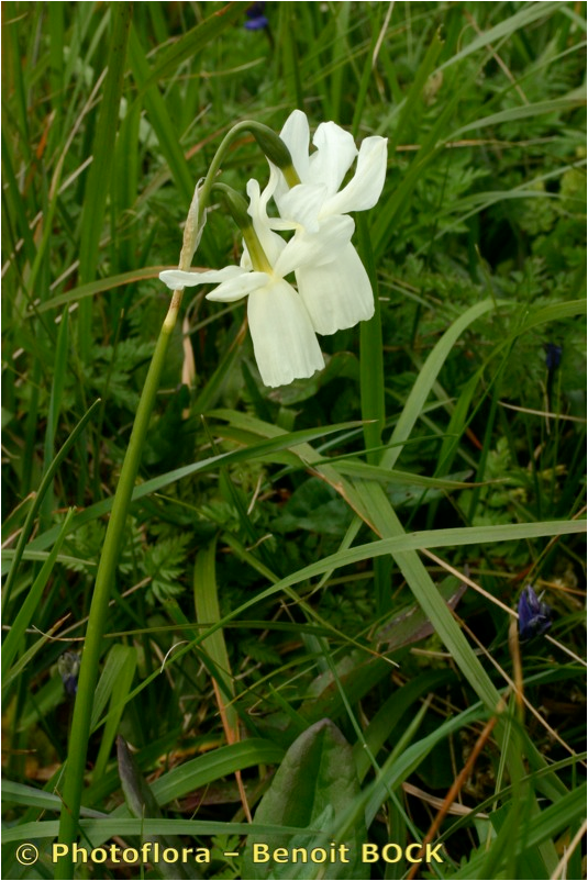 4 Schaft mit 2 - 3 Blättern, auf der Unterseite mit 2 Kielen, Blüten weiß oder hell cremefarben, Nebenkrone 9 - 13 mm lang