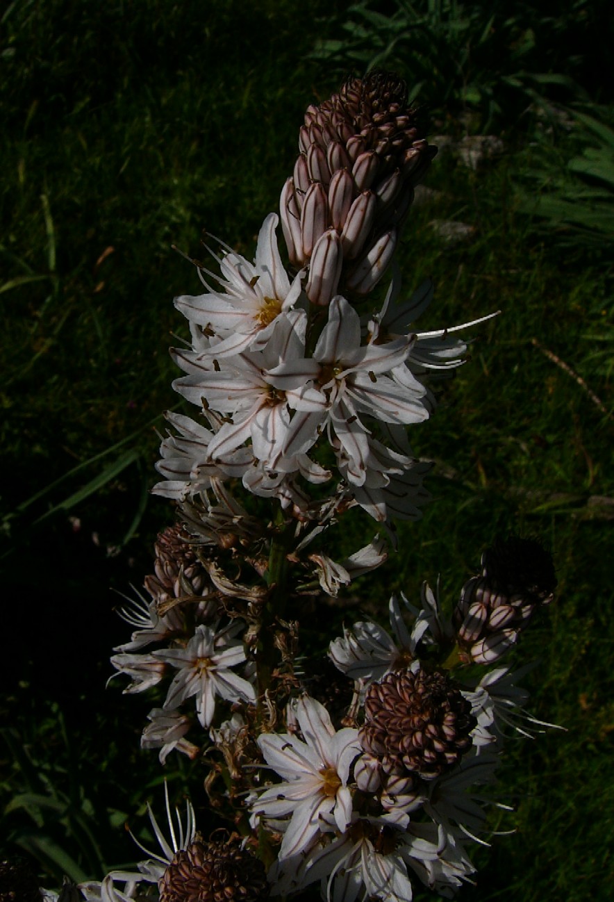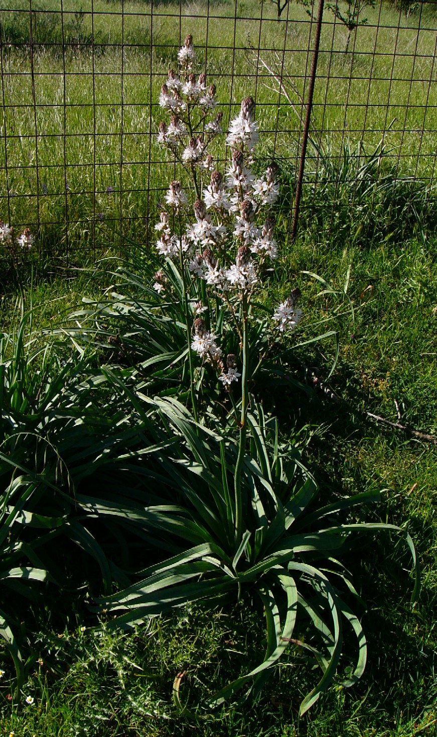 Asphodelus: Blätter breit und flach, Hochblätter innen hellbraun, am Rand weißlich