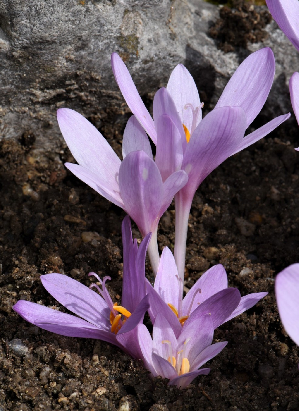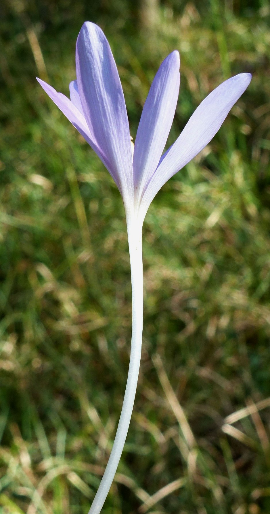 Blüten zu 1 - 7, hellviolett oder blauviolett, glockig oder trichterförmig, mit 6 Perigonblättern, die im unteren Teil zu einer langen, weißlich oder rosafarbenen Perigonröhre verwachsen sind