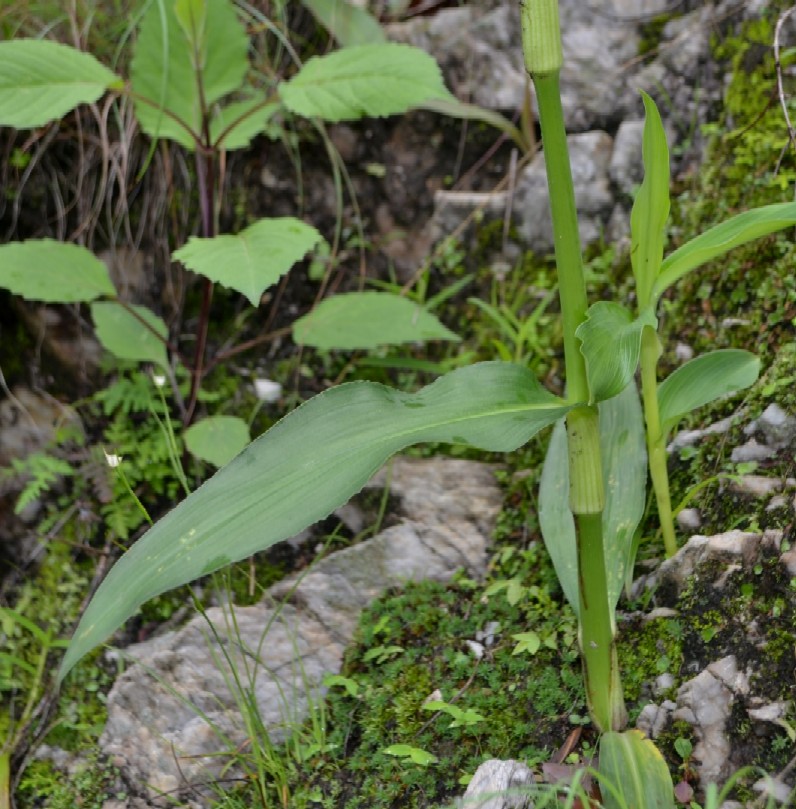 Hochblätter (Spatha) halb eirund, mit halb herzförmigem