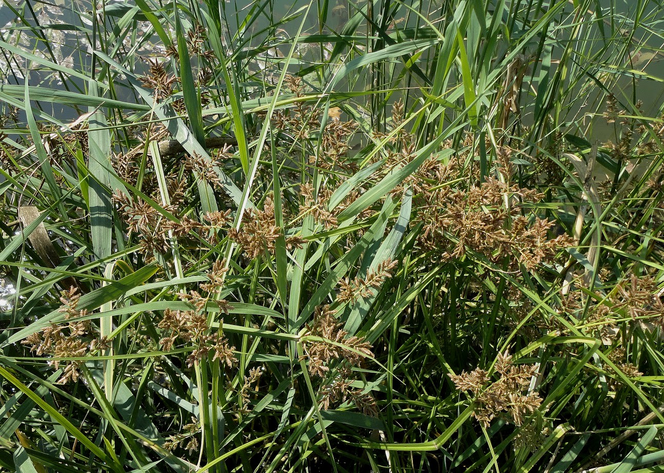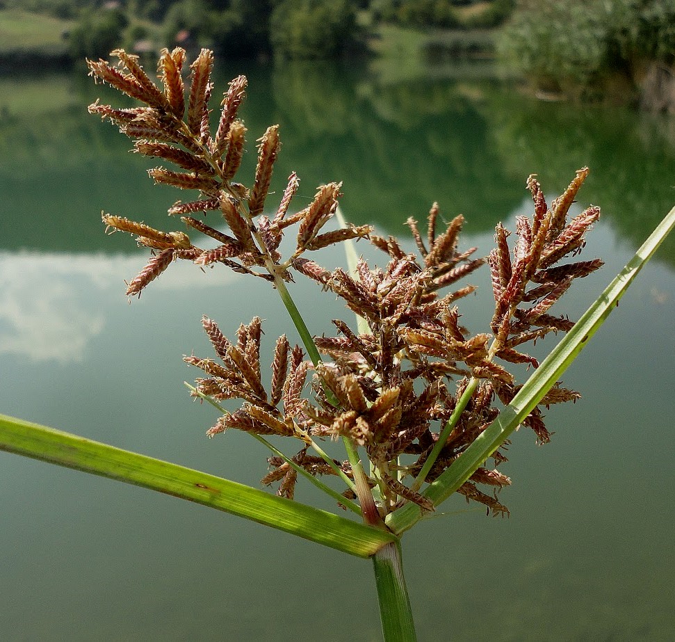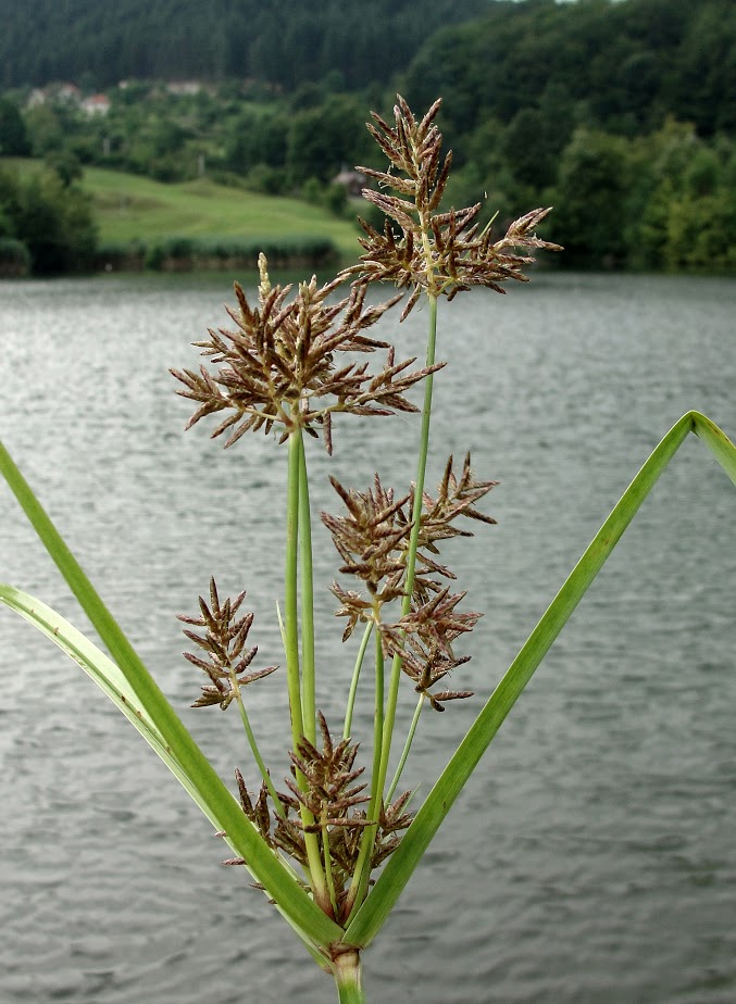 Cyperus - Blütenstand endständig, doldig, mit 4 - 25 langen Doldenstrahlen, Köpfchen eiförmig, locker, mit vielen Ähren