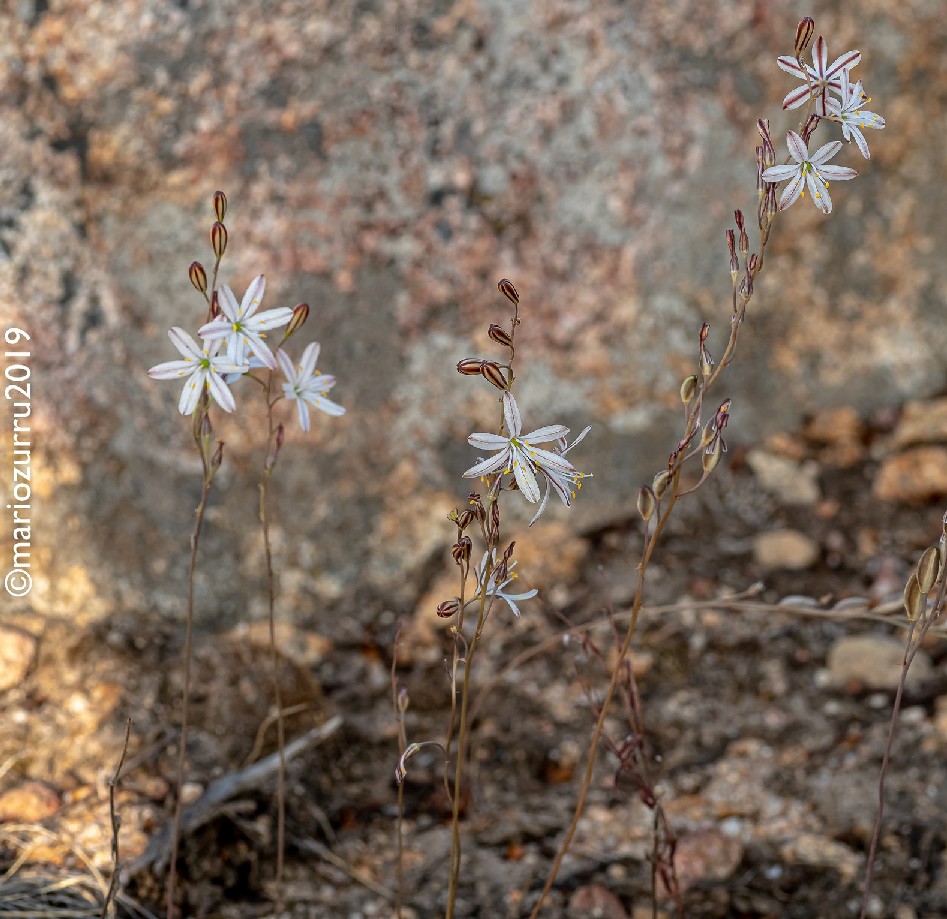 1 Blätter 2 mm breit, Pflanze 10 - 35 cm hoch, Stängel zart, mit 5 - 10 Blüten