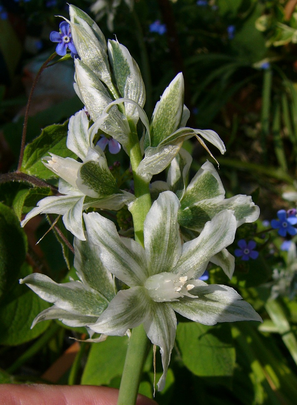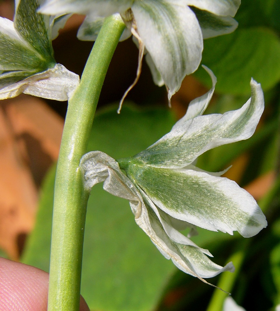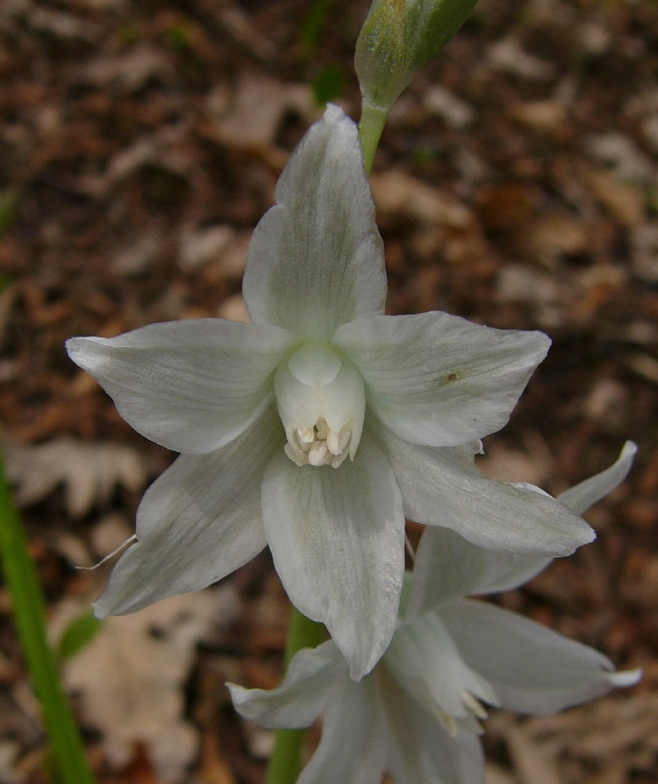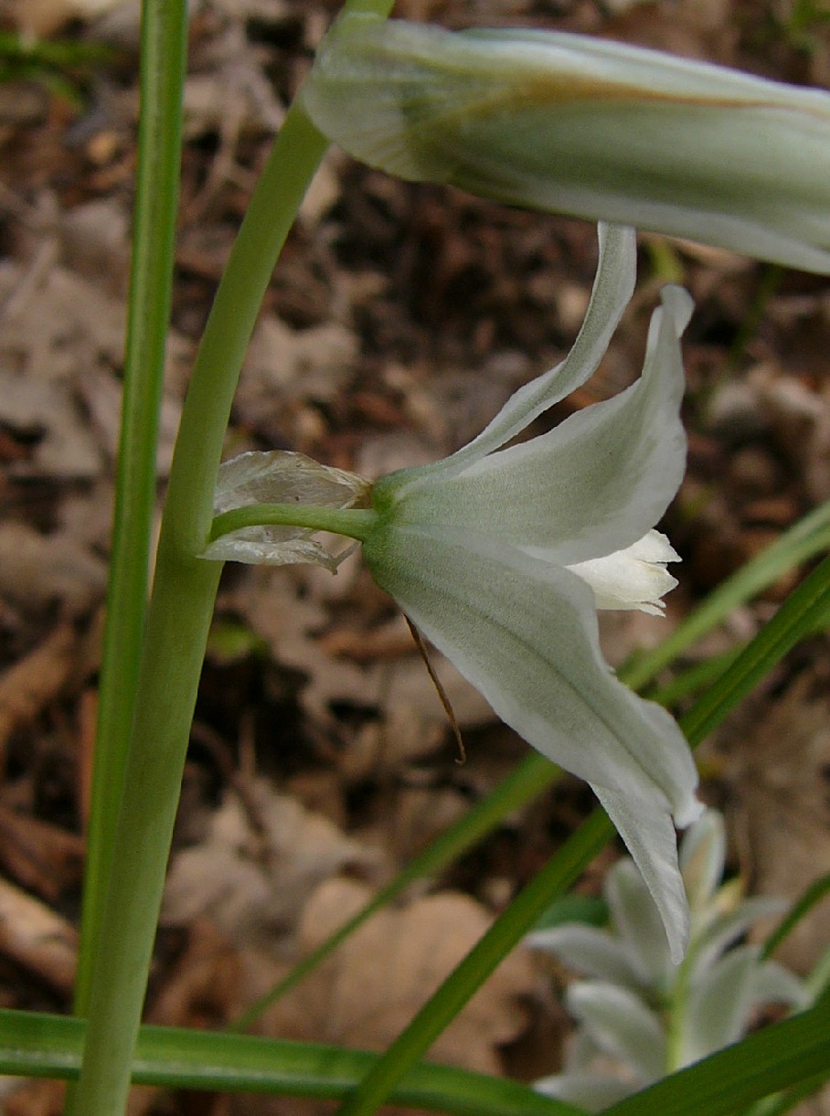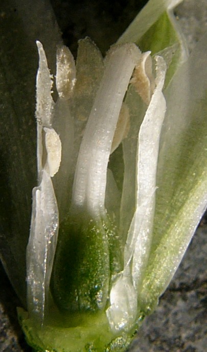 Blüten gestielt, außen grünlich, Tragblatt häutig Blüten innen weiß, weitglockig, zwittrig,