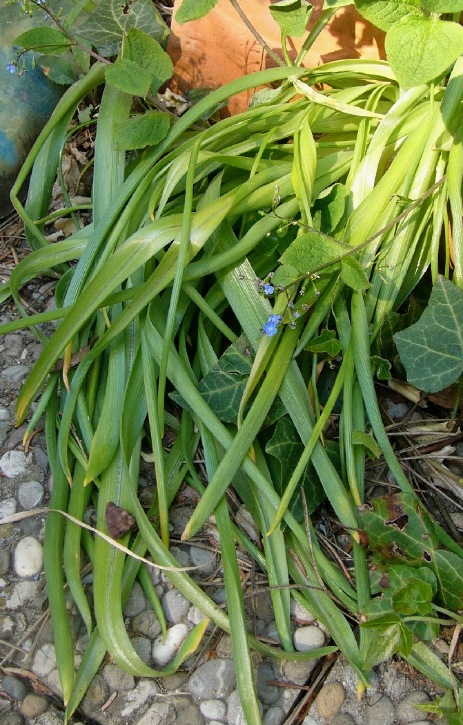 Blätter 5 - 25 mm breit, mit mehreren parallelen Adern, anfangs aufrecht, später schlaff