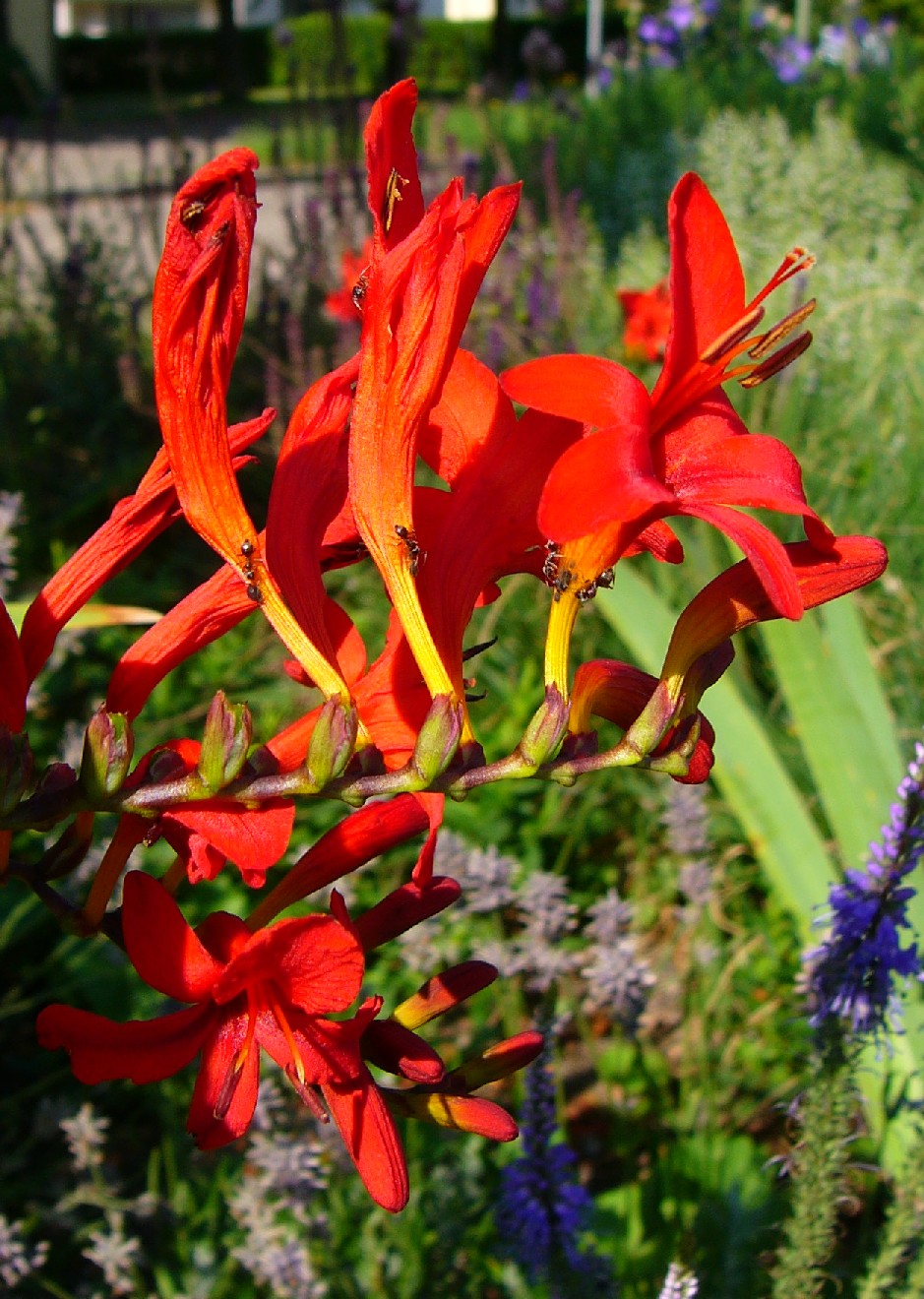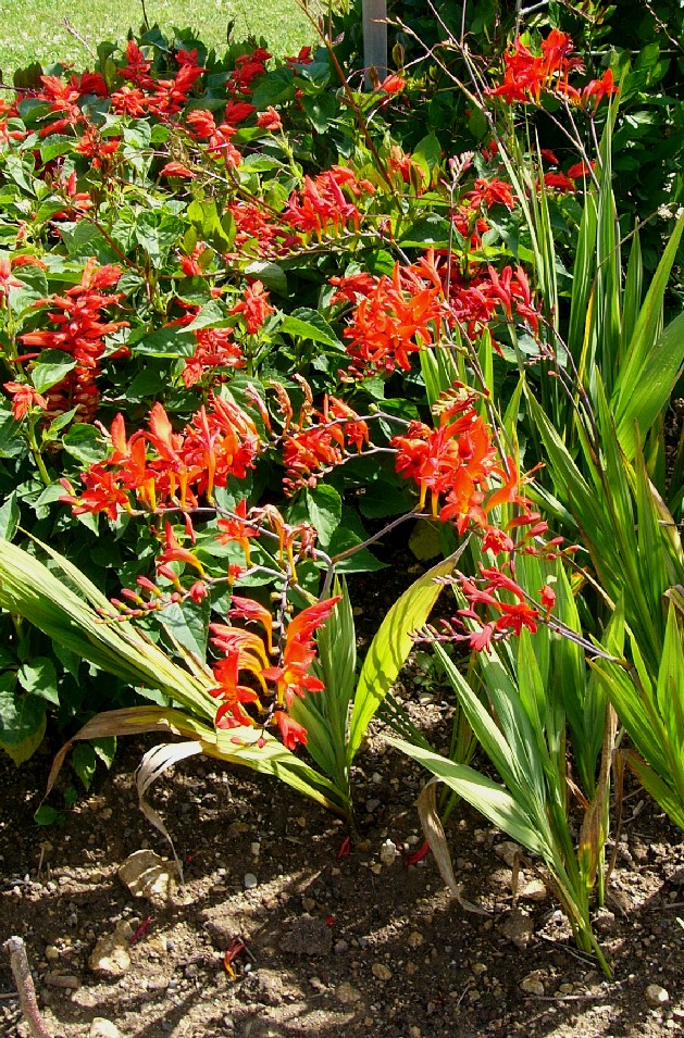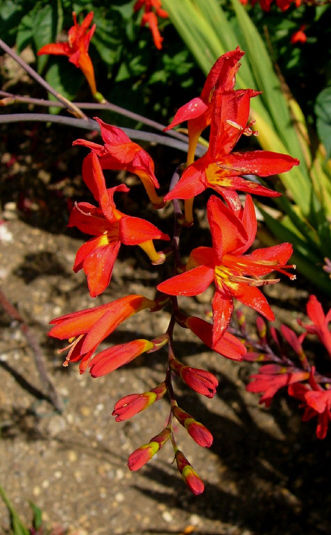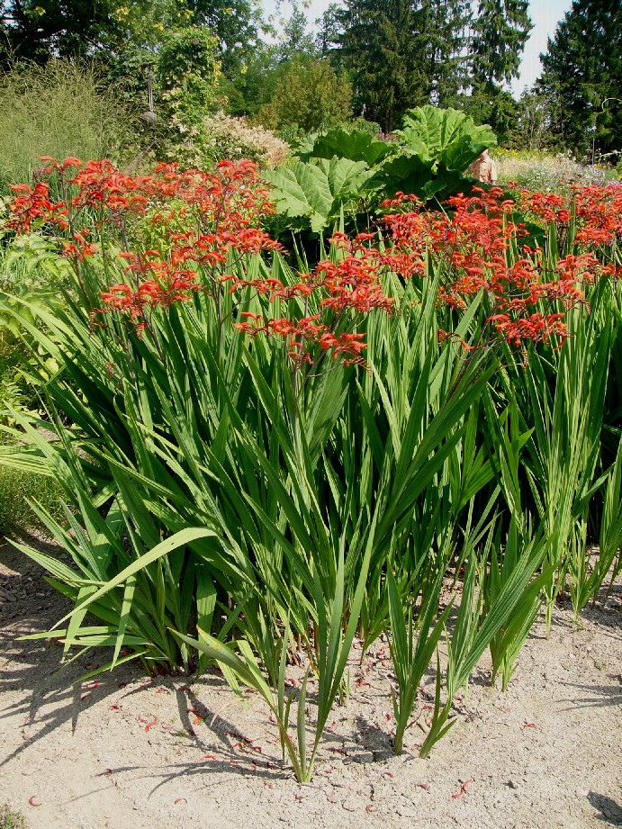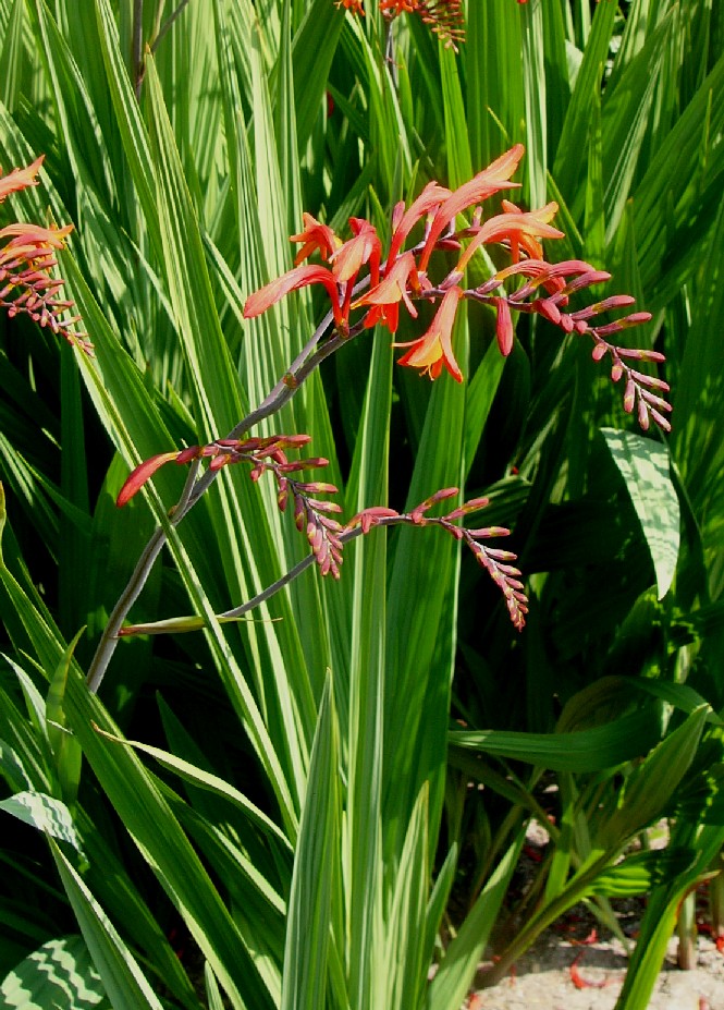 VII - X, Rabatten Hybrid Gold- Montbretie (Crocosmia aurea) und Potts-Montbretie (Crocosmia pottsii). Synonyme: English name: Nom francais: Nome italiano: Verbreitung in Deutschland: Gefährdung in Deutschland: Weltweite Verbreitung: Eingebürgert in: Etymologie: Mehrere Sorten: