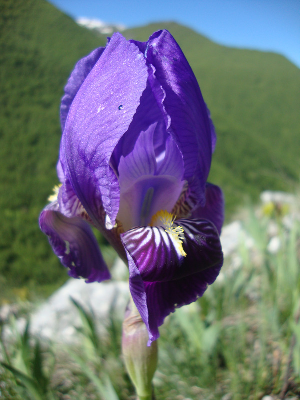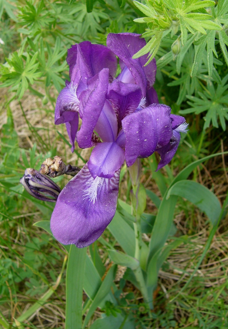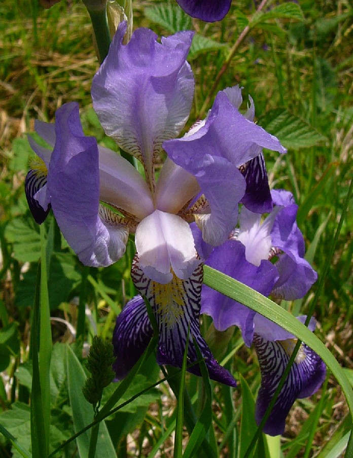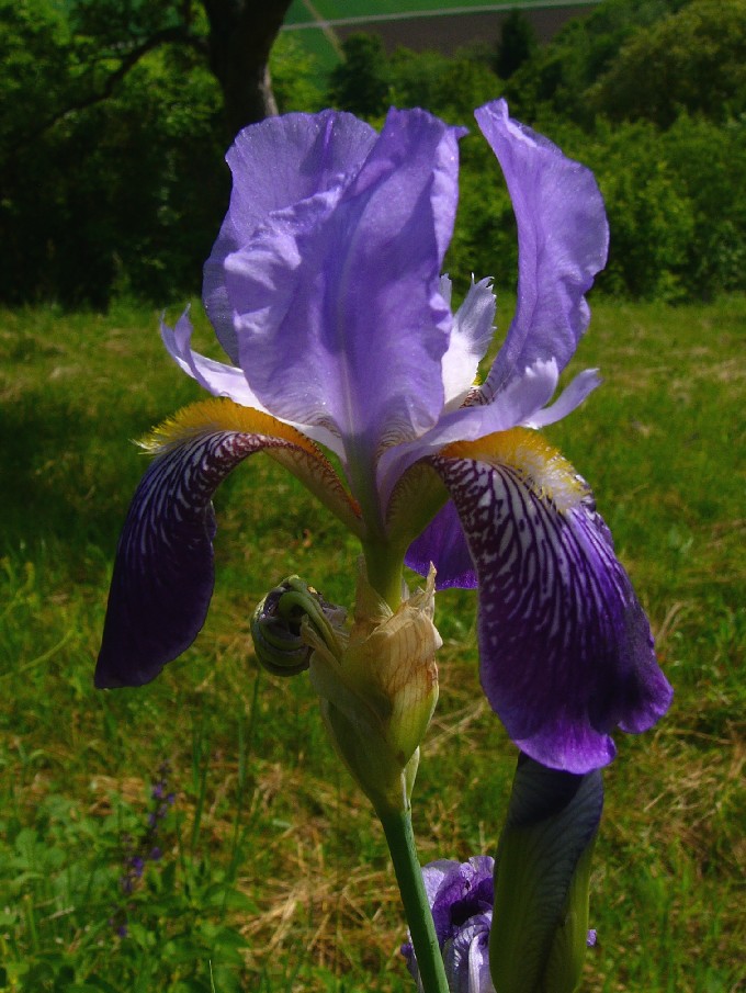 Iris- Pflanze mehrblütig, bis 120 cm hoch, Blüten blau/violett, mit Bart