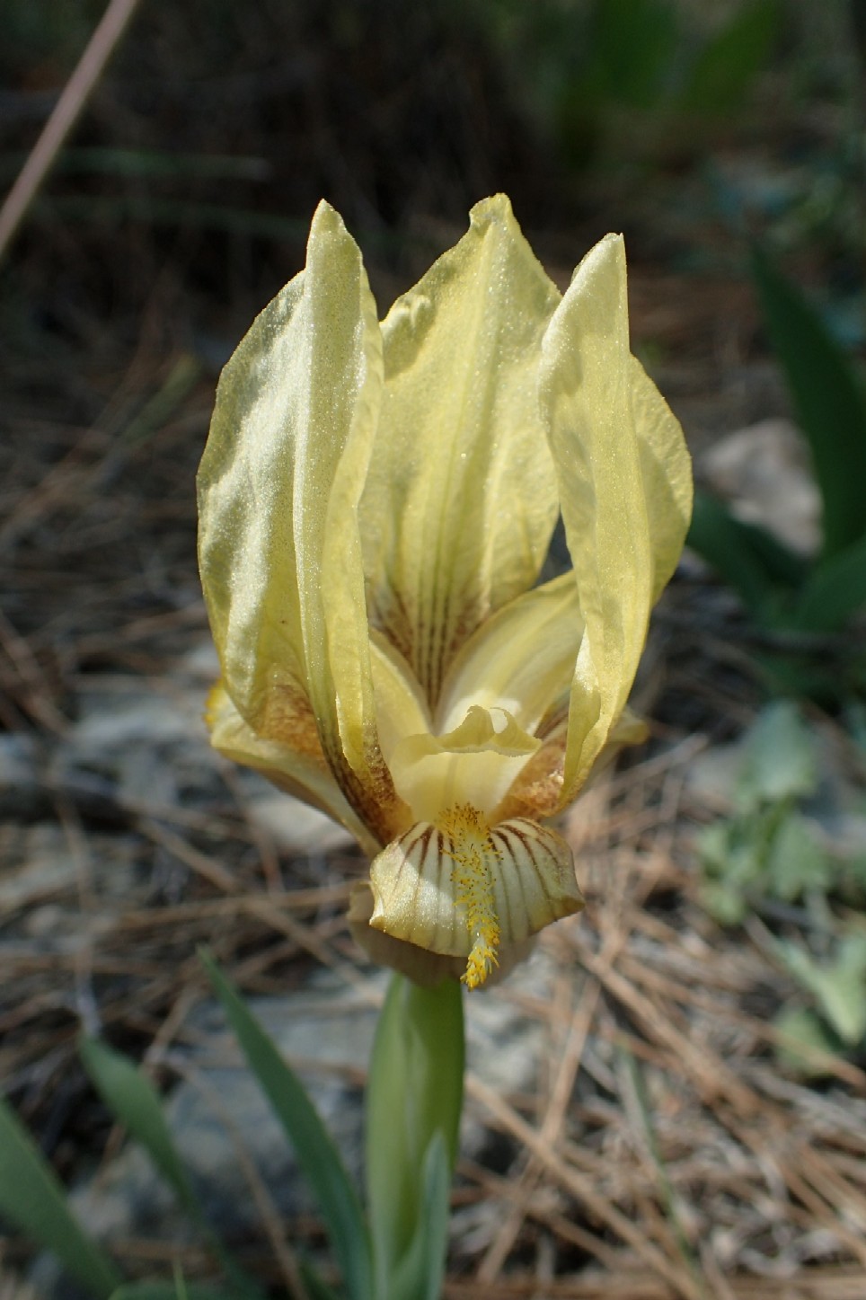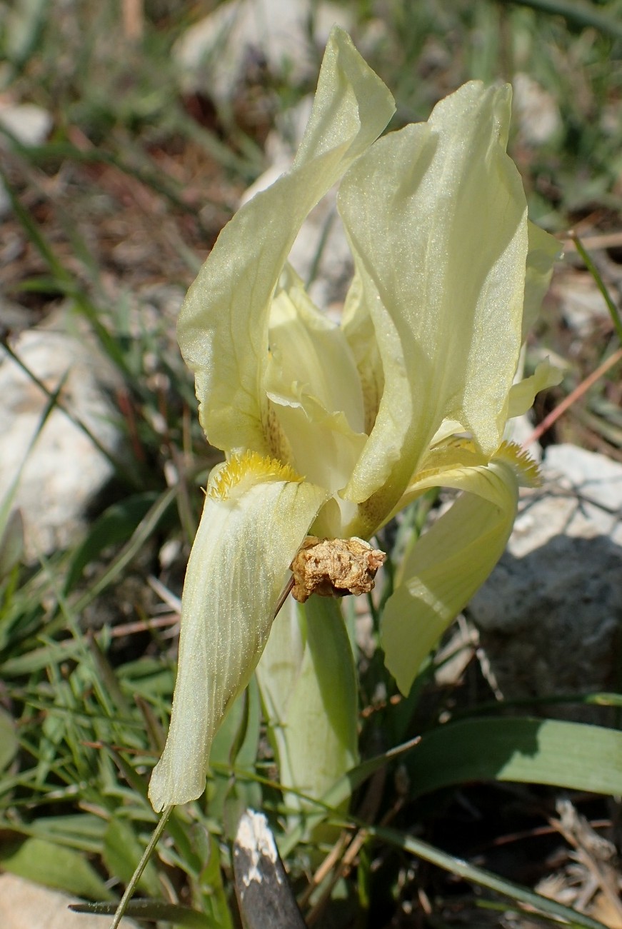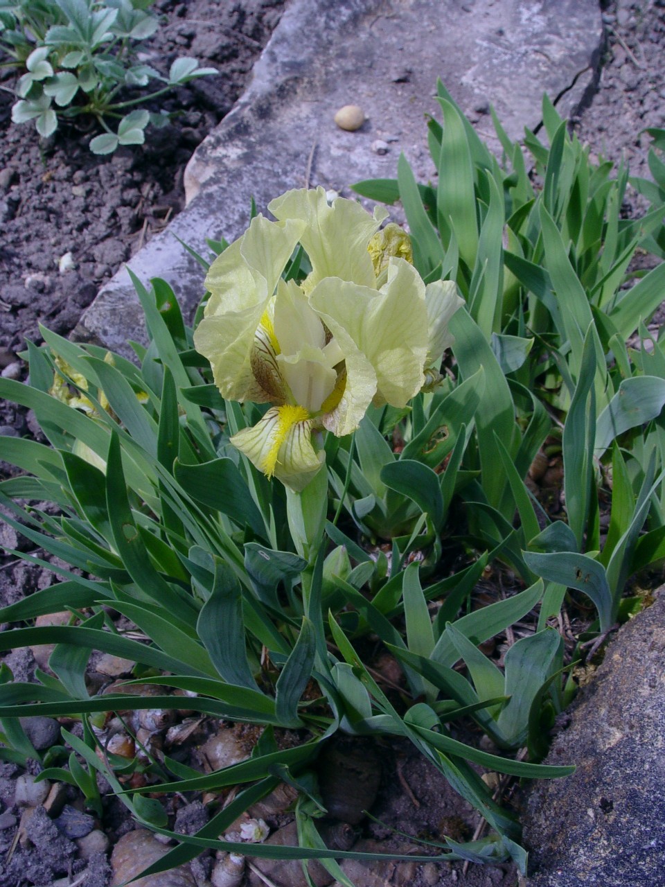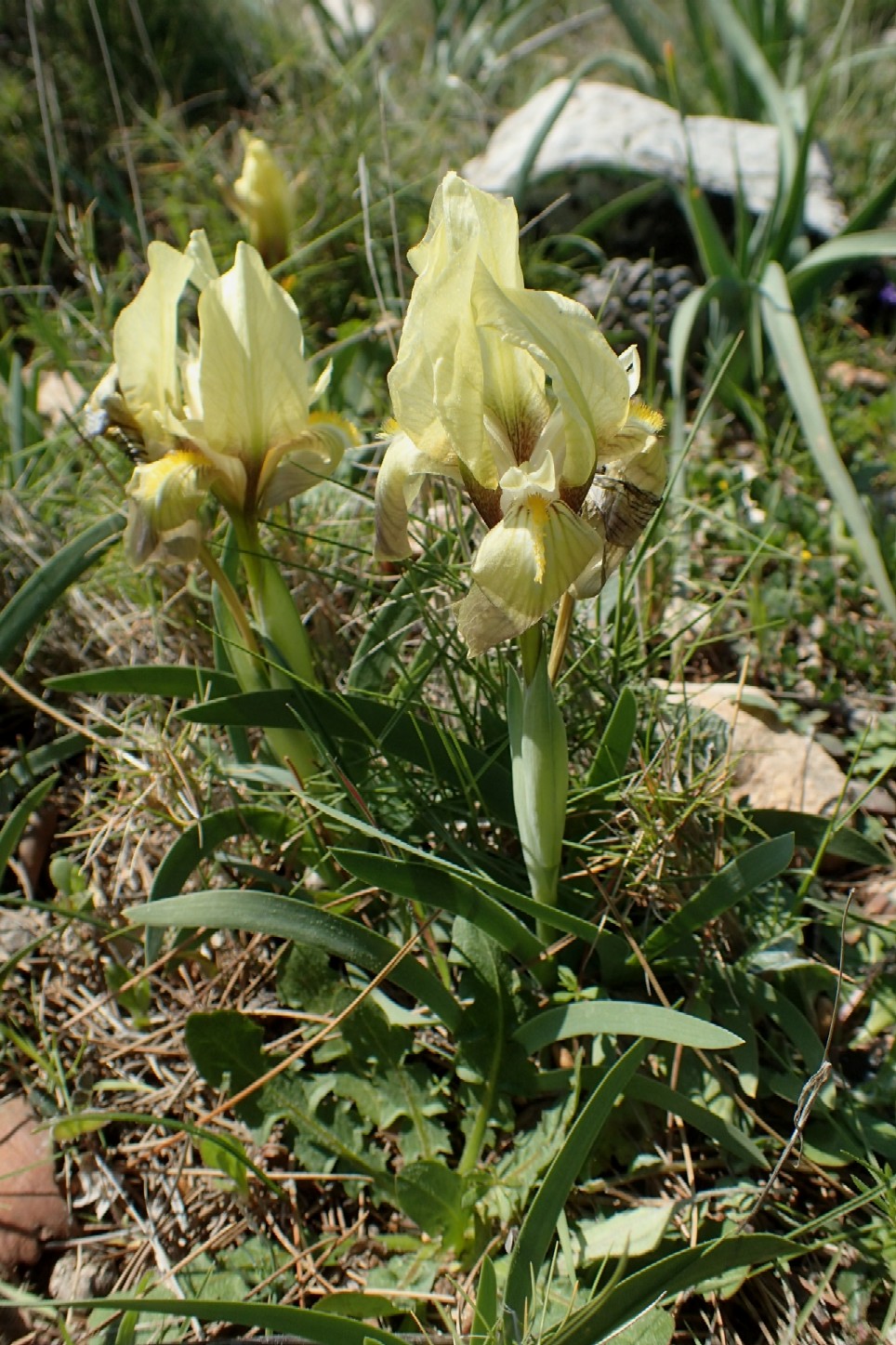 Iris - Pflanze 5 - 30 cm groß, Blüten bräunlichgelb oder rotviolett, mit Bart, Hüllblätter stark gekielt