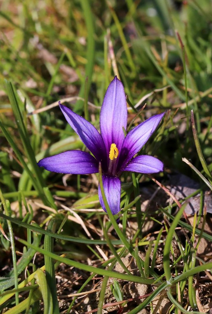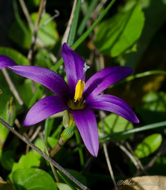 Romulea- Blüten dunkelviolett, Schlund violett, weißlich oder grünlich