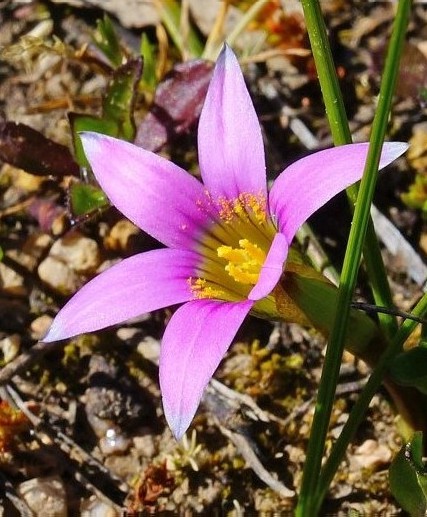 | Eingebürgert in Sardinien Blüten dunkelrosa Perigonschlund gelb > Romulea rosea