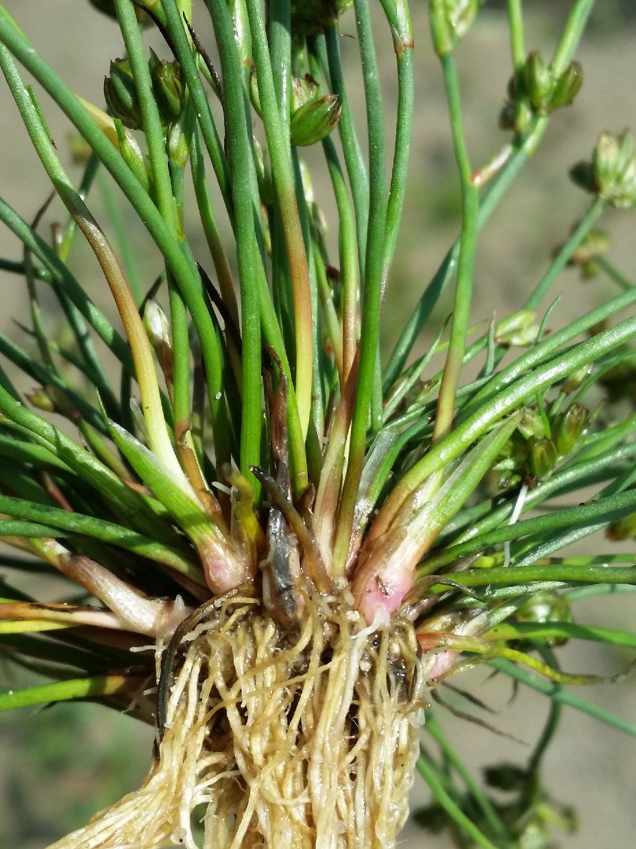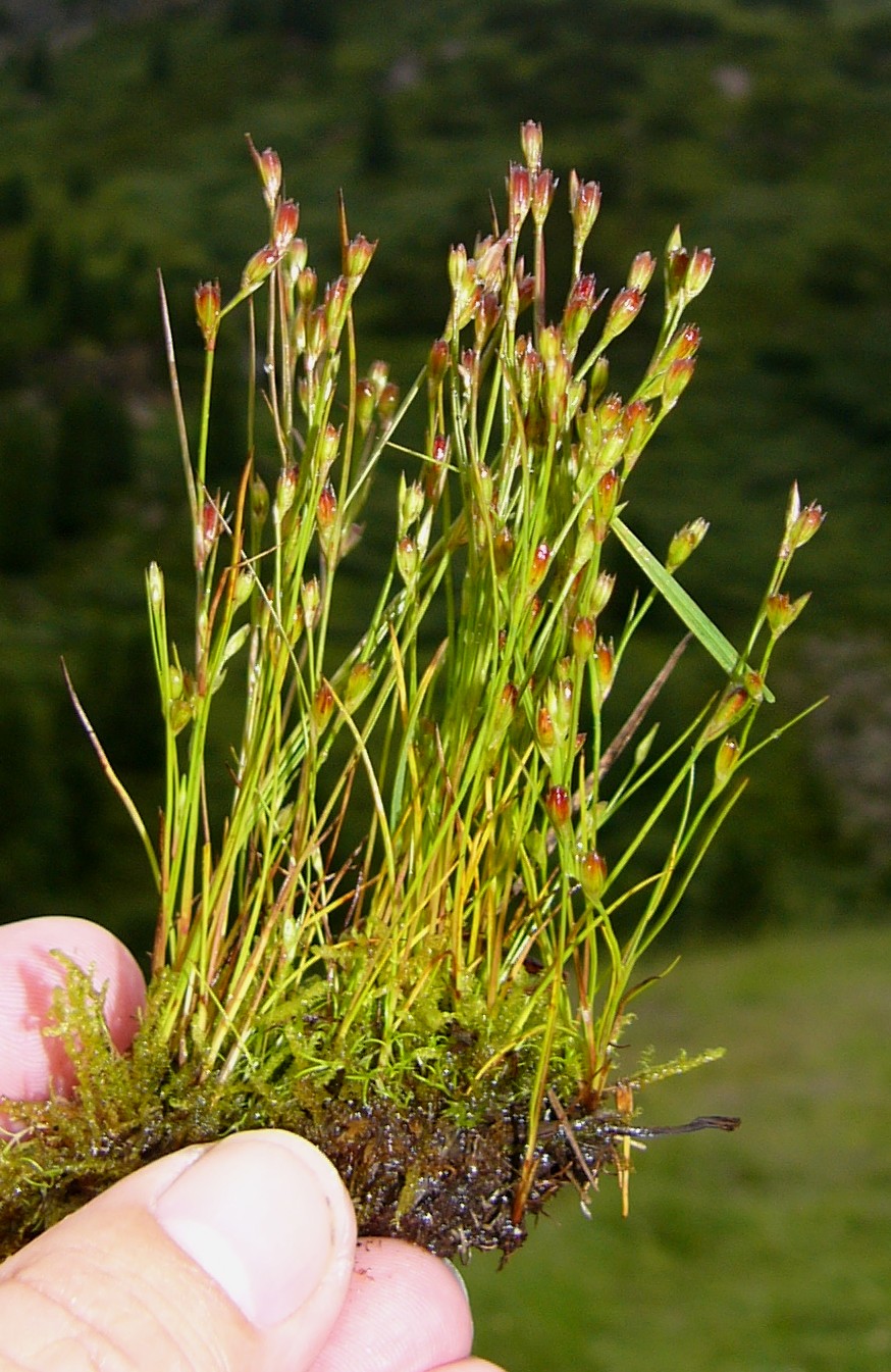 Juncus - Blätter weich, binsenartig, Blütenstände vielblütig, +/- endständig, Blüten meist einzeln, der unverzweigte untere Teil wenig länger oder kürzer als der obere blütentragende, Kapsel länglich