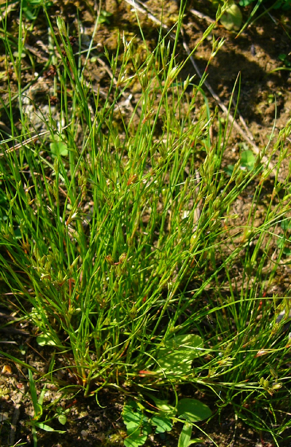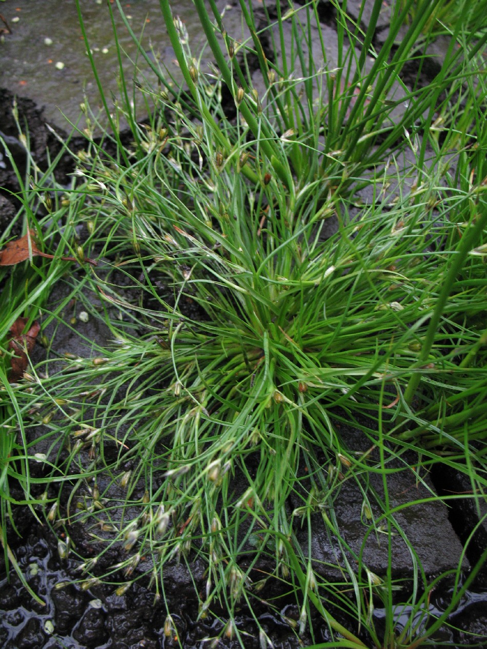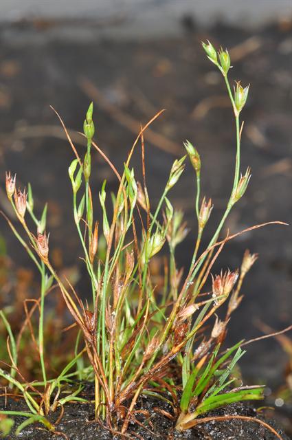 V - IX, Ufer, Äcker, Ruderalstellen Synonyme: English name: Verbreitung in Deutschland: Gefährdung in Deutschland: Weltweite Verbreitung: Der Artstatus dieser Sippe wird neuerdings stark bezweifelt. Rooks et al. (2012) schließen sie sogar komplett in Juncus bufonius ein, da die zytologischen nicht mit den morphologischen Unterschieden korrelieren würden. Kirschner (in Müller et al. 2021) führt sie wieder als zytologisch getrennt, erwähnt aber die breite Merkmalsüberlappung. Etymologie: