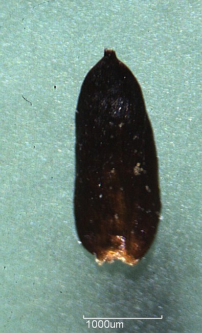 Kapsel 4 mm lang, dreieckig- eiförmig, so lang oder etwas länger als die Perigonblätter, braun, glänzend, Schnabel 1,5 mm lang