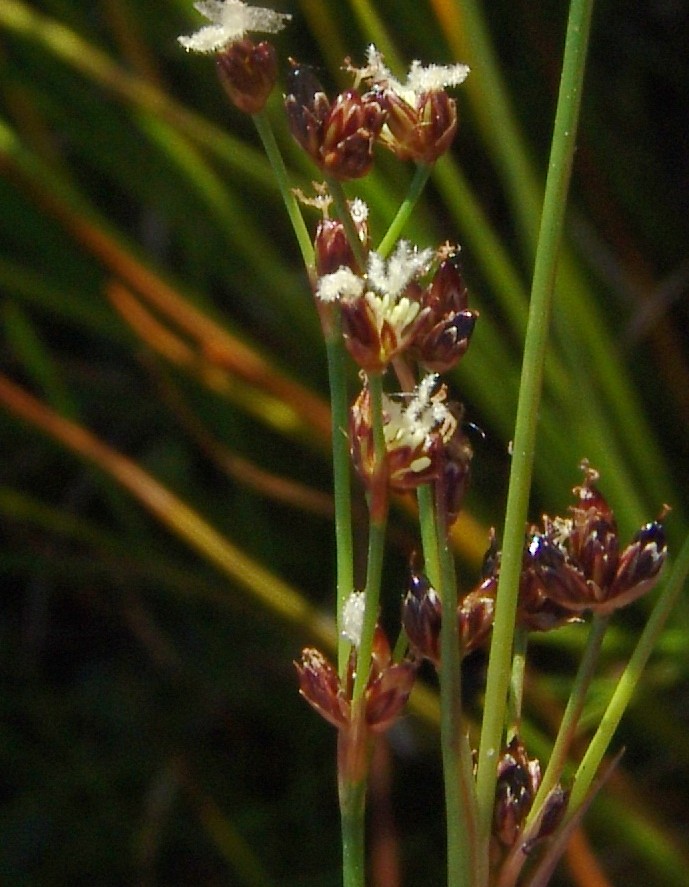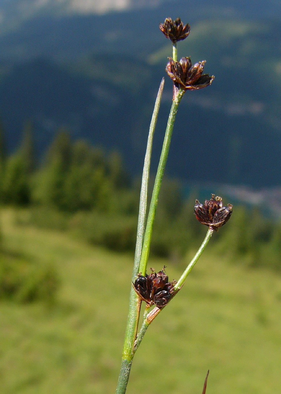 Juncus - Blätter weich, binsenartig, einröhrig, Blüten in 3 - 10 +/- endständigen Köpfchen, Köpfchen +/- halbkugelig, mit 3 - 10 Blüten, Perigonblätter 2 - 4 mm lang, Kapsel länger als die Perigonblätter