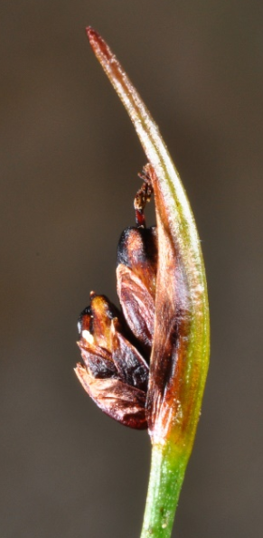 Alpenpflanzen (höher 1600 m) Blattscheiden mit geschlitzten Öhrchen Blütenstand 1 - 4- blütig, von 1 - 2 linealischen Hochblättern weit überragt > Oreojuncus