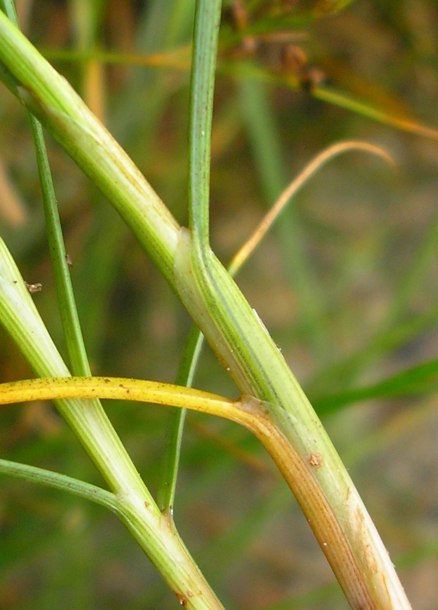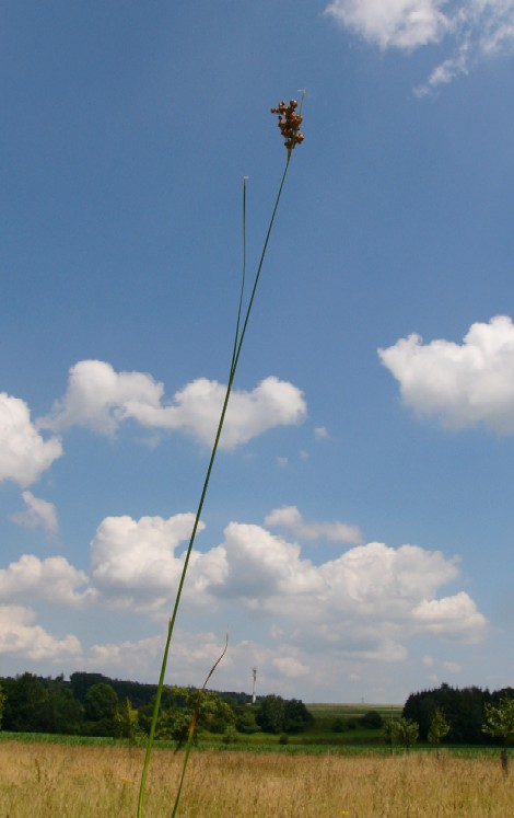 Stängel mit 1 - 2 flachen, rinnigen Stängelblättern in der Mitte des Stängels