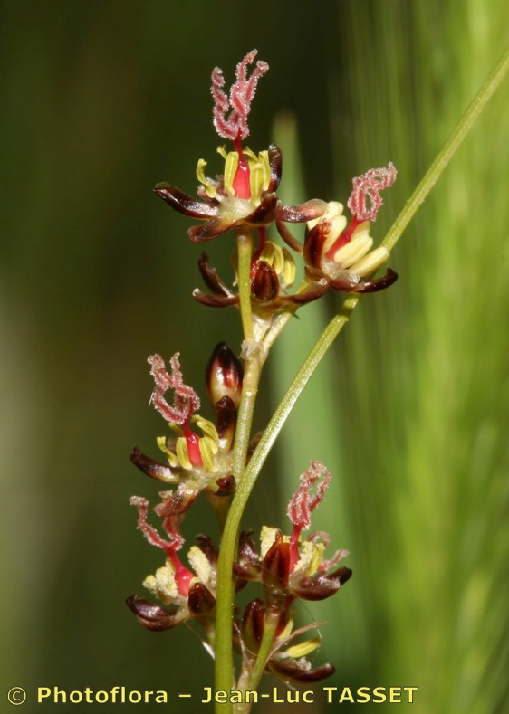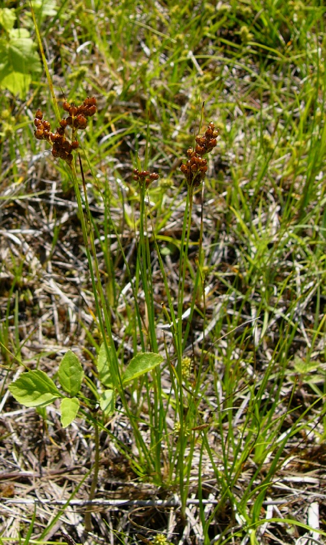 Juncus - Blätter weich, binsenartig, Blütenstände +/- endständig, rispig, der unverzweigte untere Teil deutlich länger als der obere blütentragende, unterstes Tragblatt überragt den Blütenstand deutlich, Perigonblätter stumpf, kürzer als die reife Kapsel