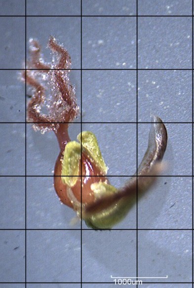 Griffel 0,6 - 1mm lang, ca. so lang wie der Fruchtknoten, Narben