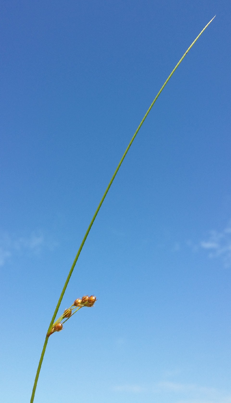 Stängel (Achtung: bricht oft ab!) Blütenstand wenigblütig (3 - 7 Blüten) > Juncus filiformis