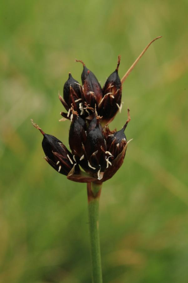 1 Kapsel 7 - 10 mm lang, schwarzbraun, viel länger als die Perigonblätter