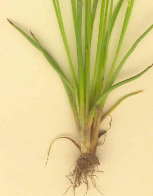 Blätter rinnig, flach, bis 100 mm lang, 4 mm breit, über den grundständigen meist noch ein Stängelblatt über der Stängelmitte Rhizom lang kriechend