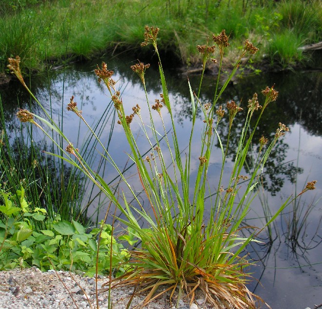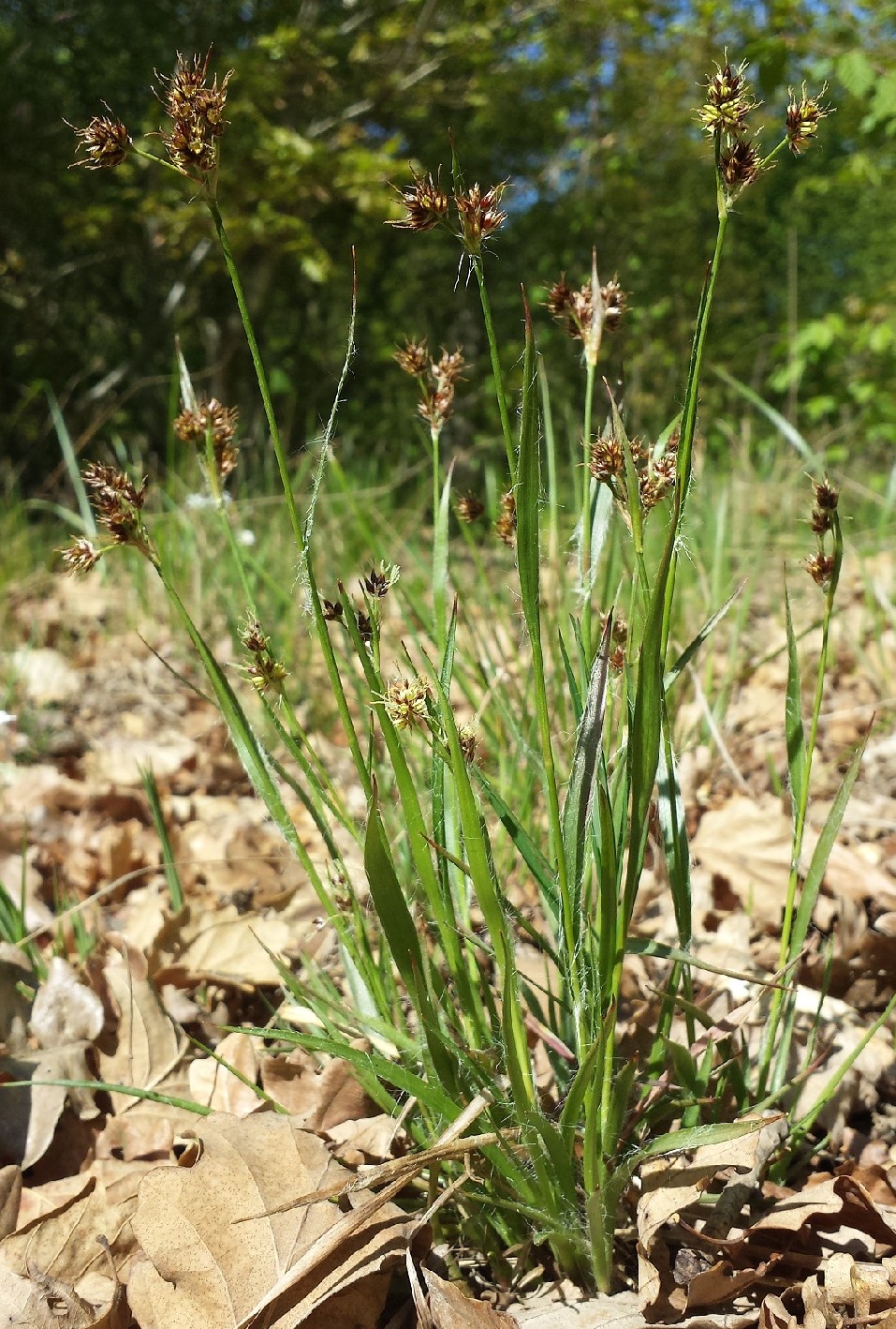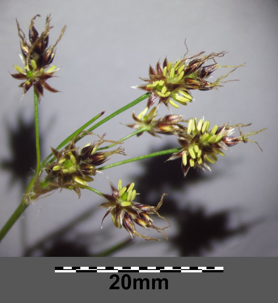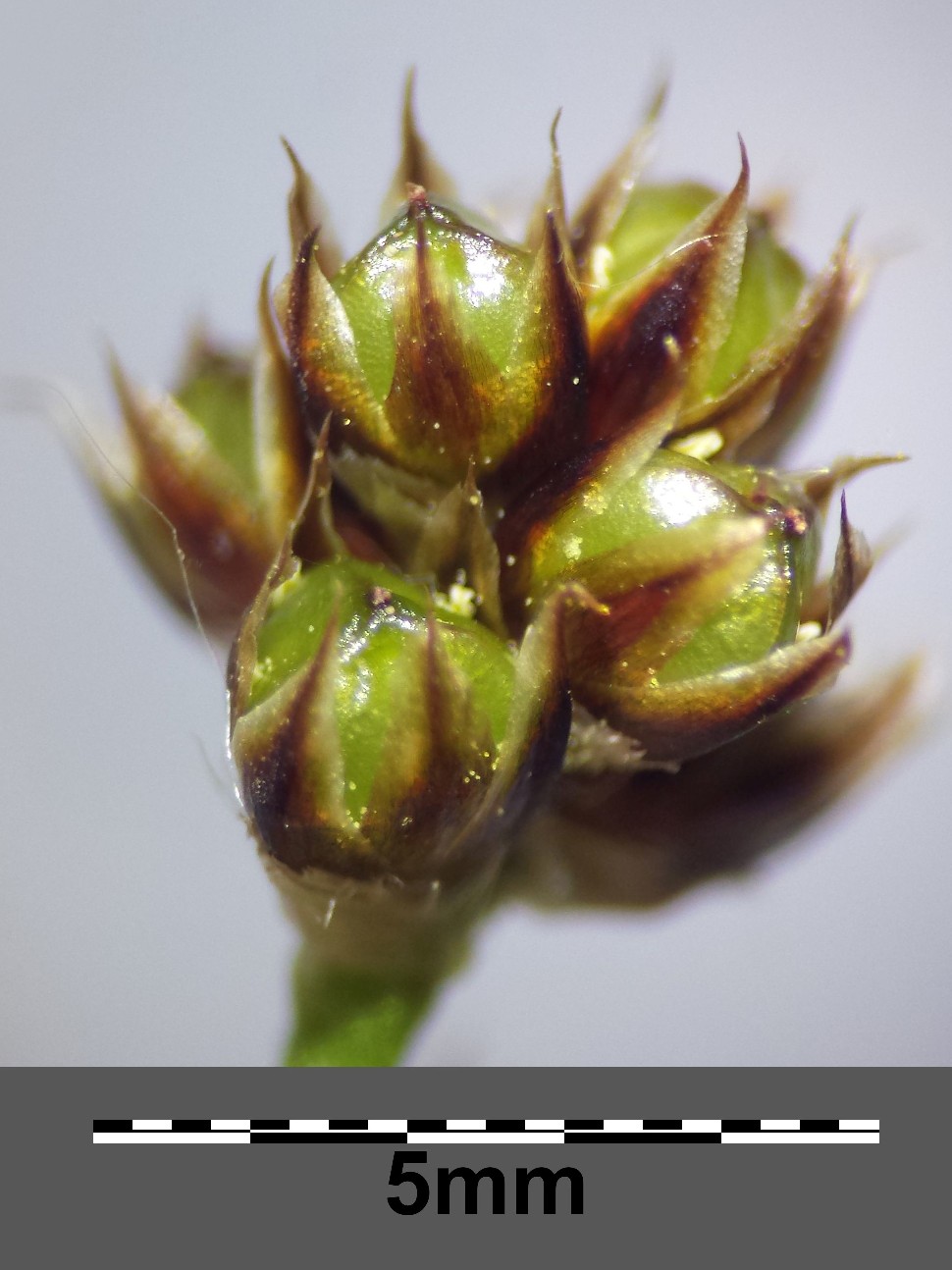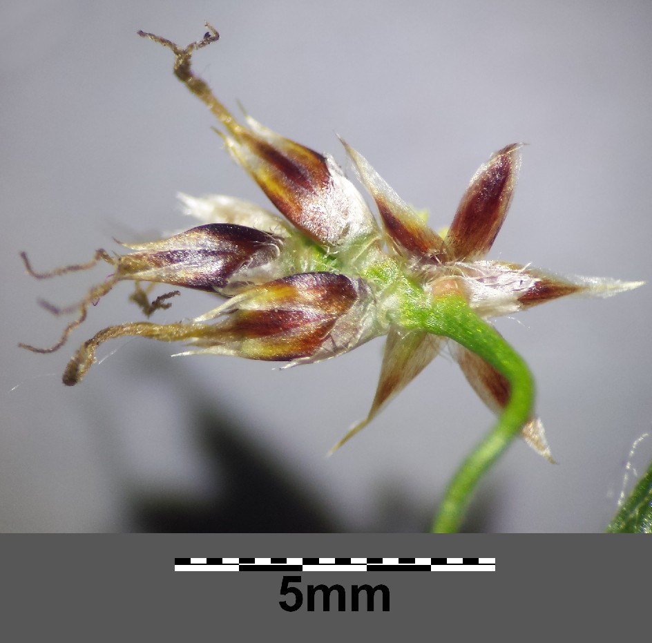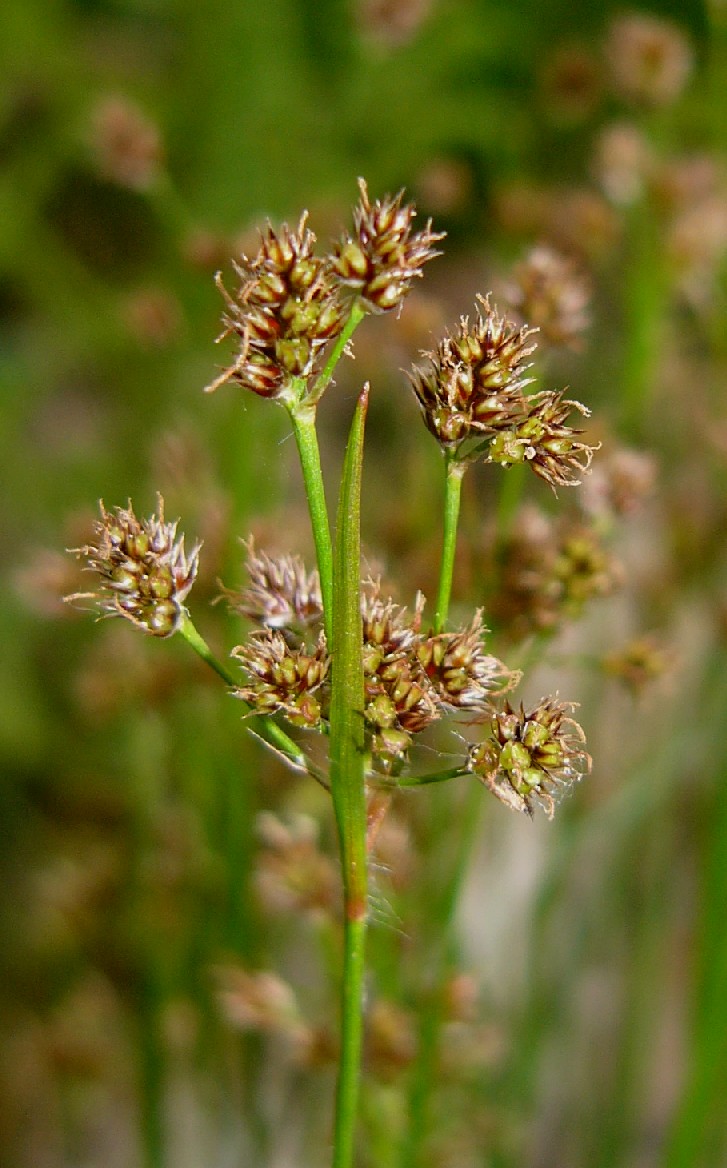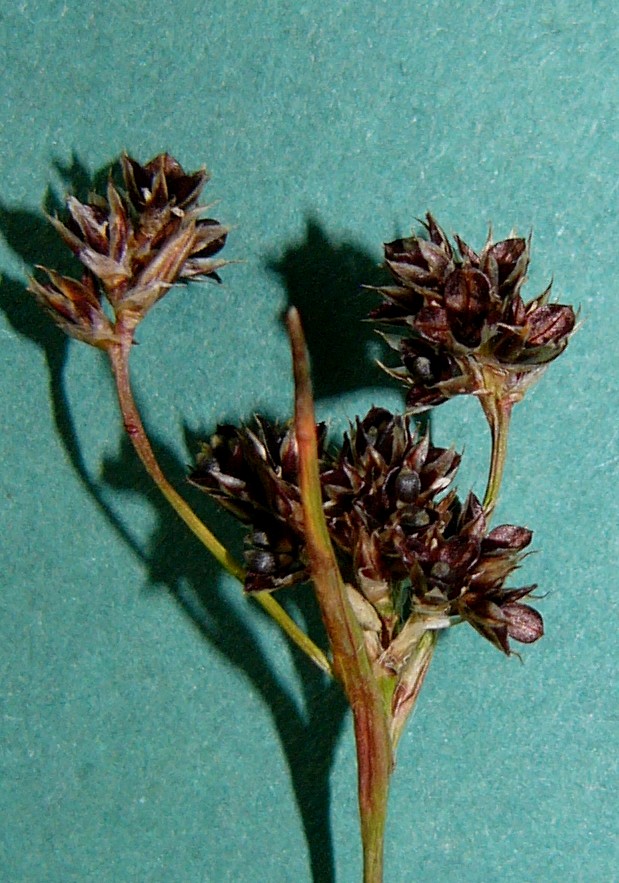 Luzula - Blüten ungestielt, in mehreren Köpfchen, zumindest einige Köpfchen lang gestielt, alle Köpfchenstiele aufrecht, Kapsel 2 - 3 mm lang, Griffel lang