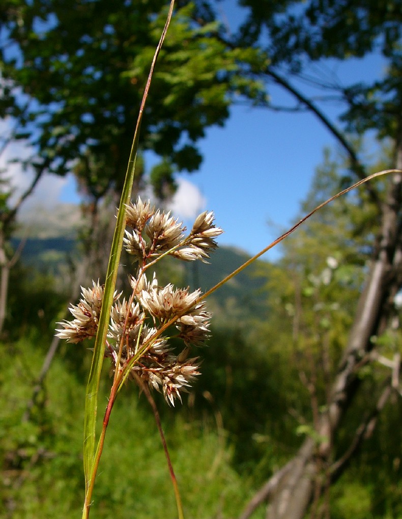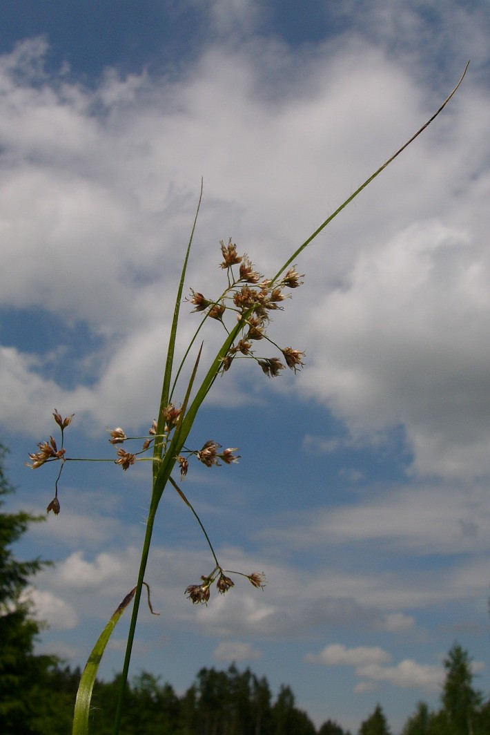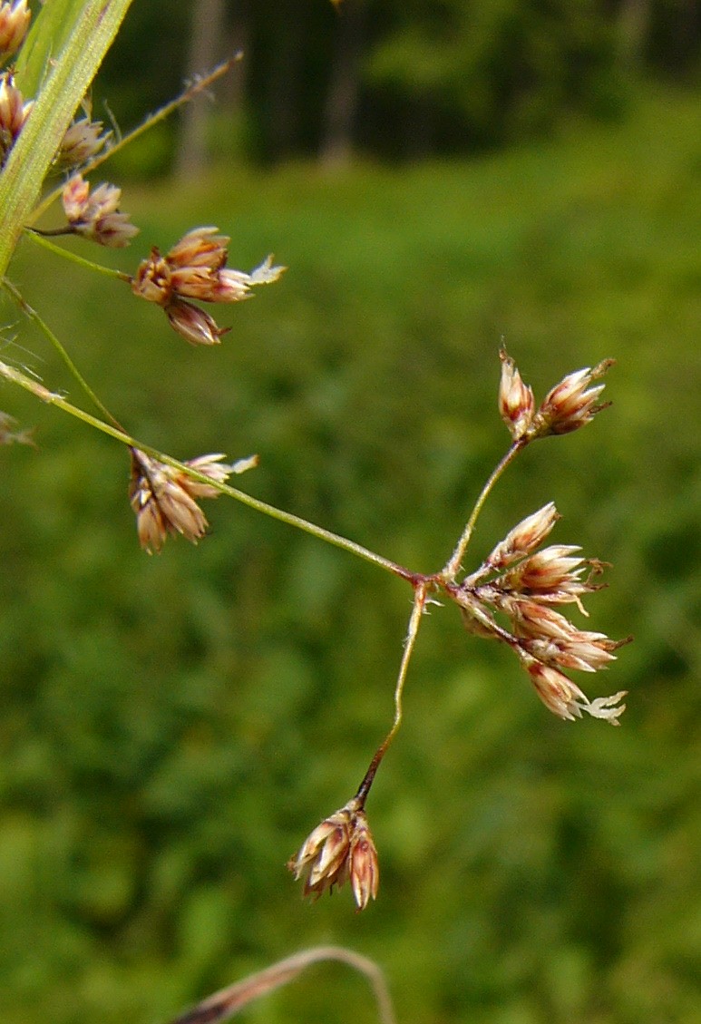 Luzula - Perigonblätter weißlich oder kupferrot, Tragblatt länger als der Blütenstand