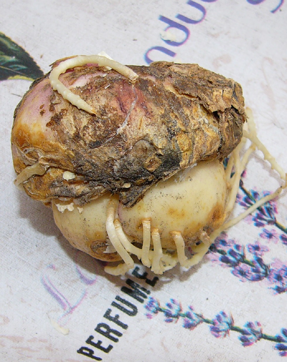 Stängel schwarzviolett, bereift Laubblätter quirlig, linealisch- lanzettlich, parallelnervig Zwiebeln bis zu 10 cm im Durchmesser
