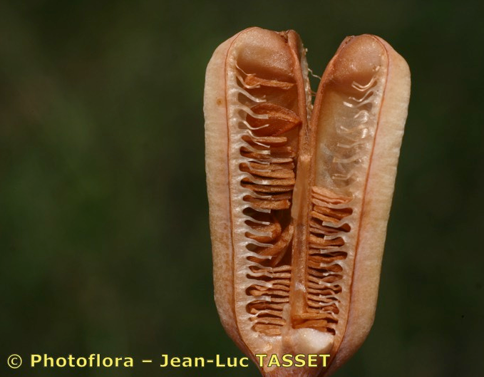 Blüten innen grün, Nektardrüsen rundlich, 4 mm im Durchmesser, 5 - 6 mm vom Grund der Perigonblätter entfernt