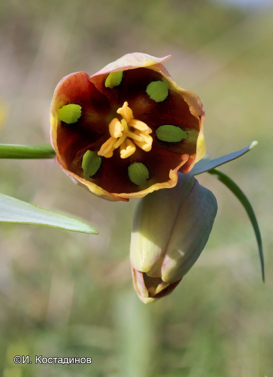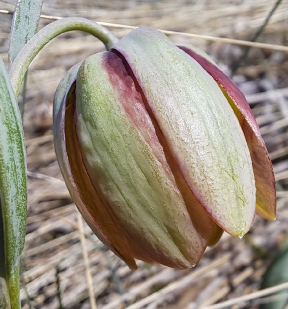 2 Blüten ohne Schachbrettmuster, meist mit 1 Tragblatt