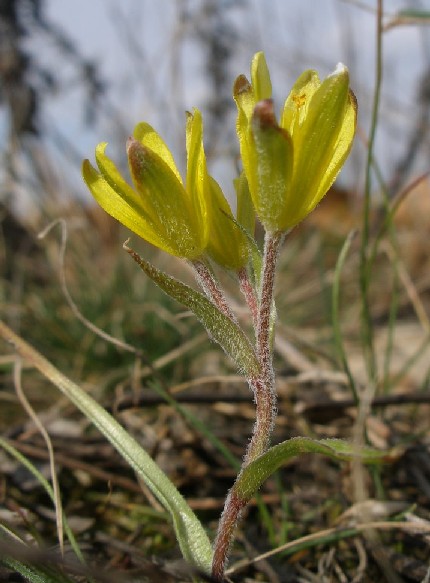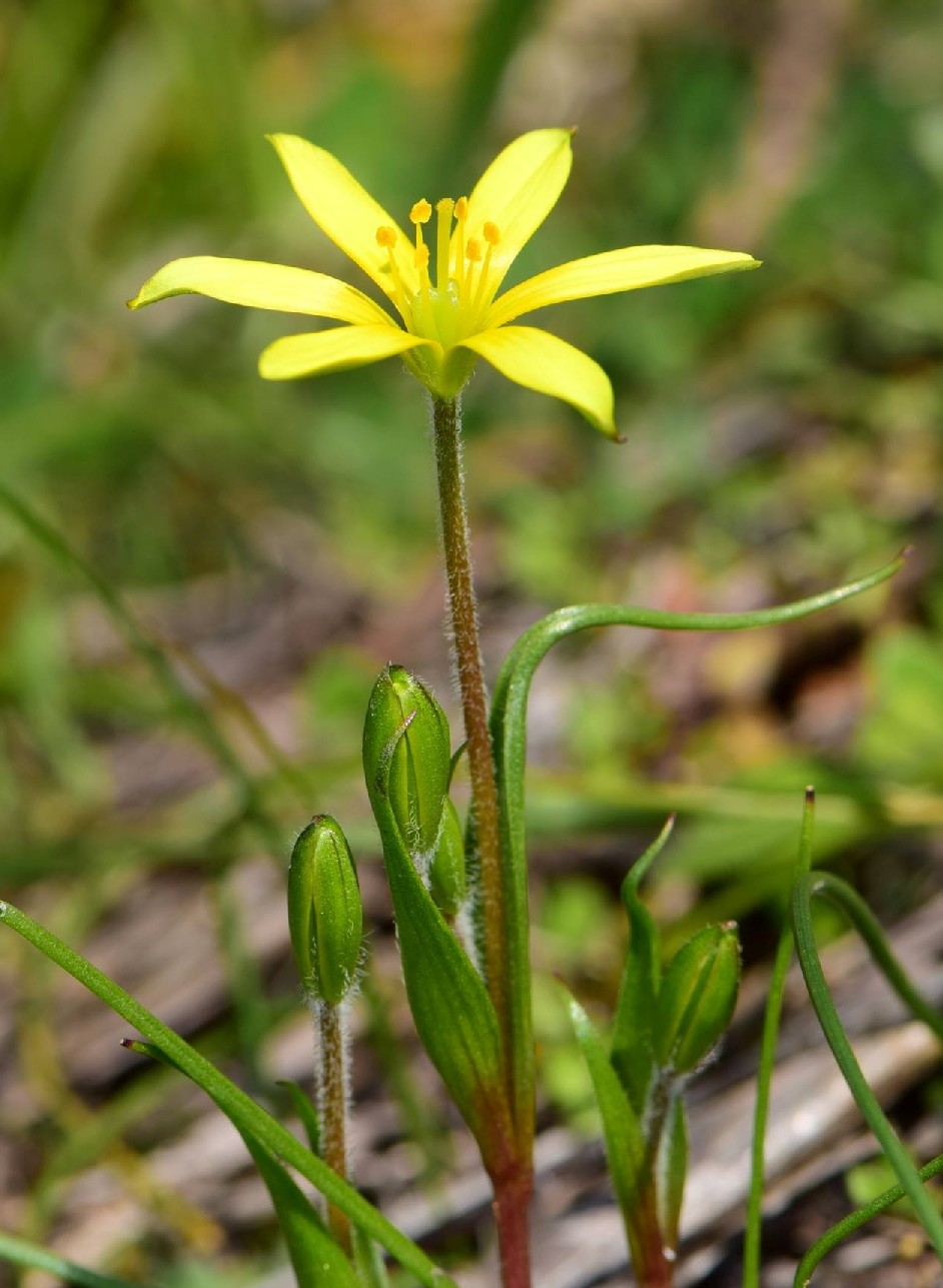 Gagea - Blüten gelb, Blütenstiele behaart, Grundblätter 0,3 - 2 mm breit, nicht hohl, meist mit 3 Leitbündel