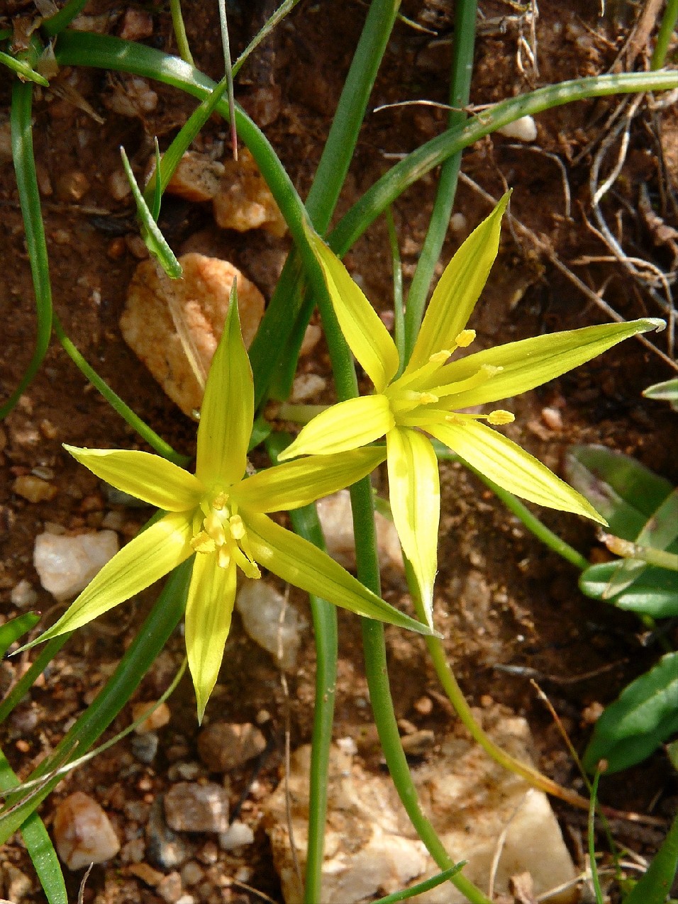 Gagea - Blüten gelb, Hüllblätter des Blütenstandes unterirdisch am Stängel ansetzend