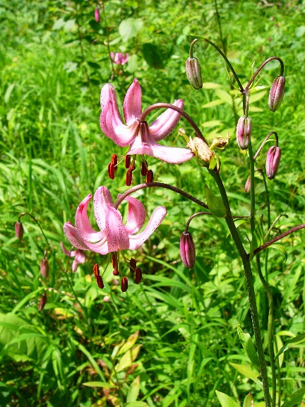 Blütenstand vielblütig Blüten orange, aufrecht oder Blüten mit zurückgebogenen Perigonblättern > Lilium (Lilie)