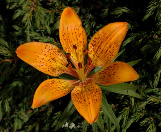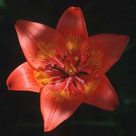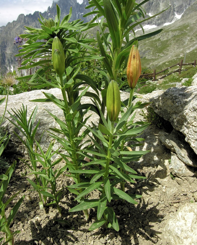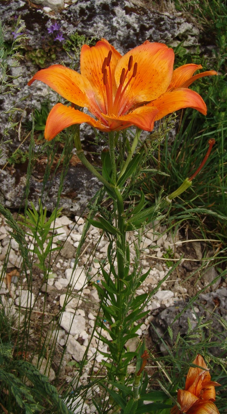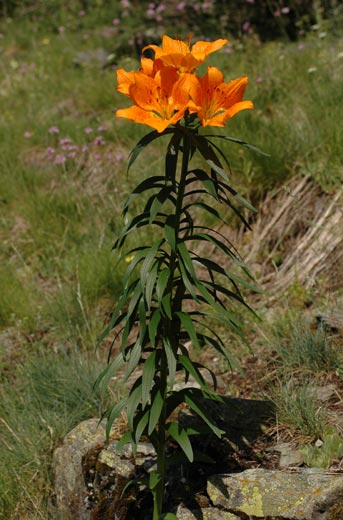 Blattachseln der oberen Blätter Blüten dunkel- bis hellorangerot, meist mit schwarzen Flecken Hauptverbreitung: Westalpen > 2