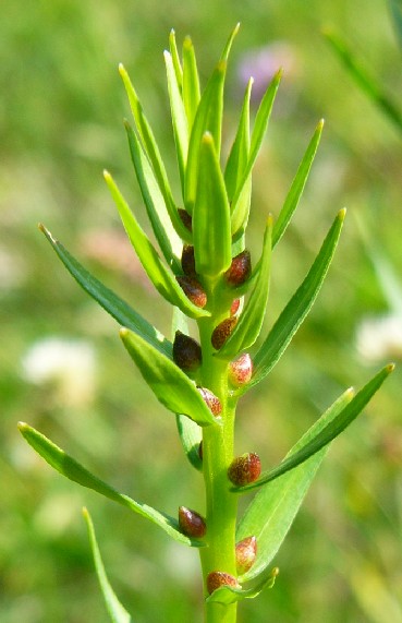 Blätter mit Bulbillen (Brutknospen) in den Blattachseln der oberen Blätter, die Bulbillen fallen ab und können innerhalb von 2 - 3 Jahren neue Zwiebeln bilden