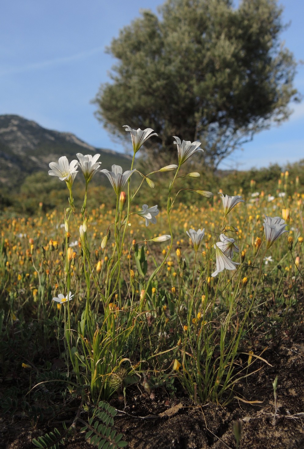 Stängel mit 2 - 4 fädlichen, 1 - 2 mm breiten Stängelblätter und mit 2 - 3 Grundblättern