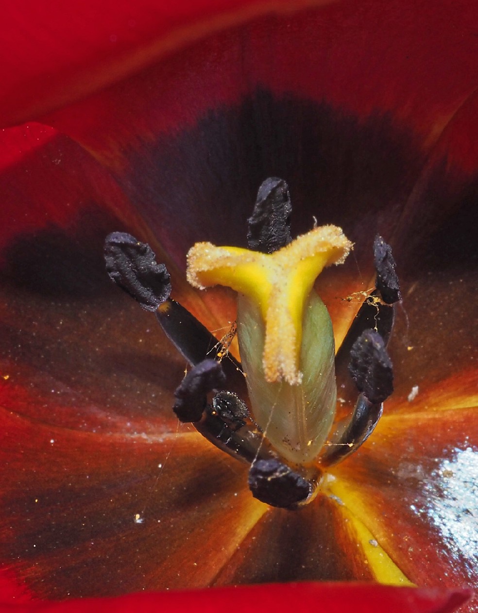 Perigonblätter Filamente 7 - 10 mm lang, kahl, schwarzviolett, am
