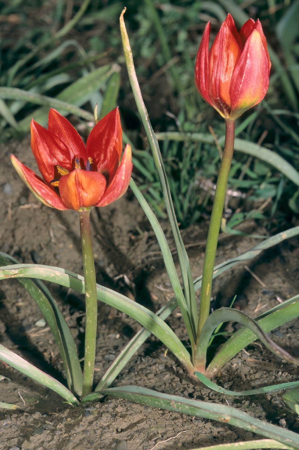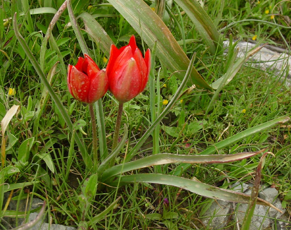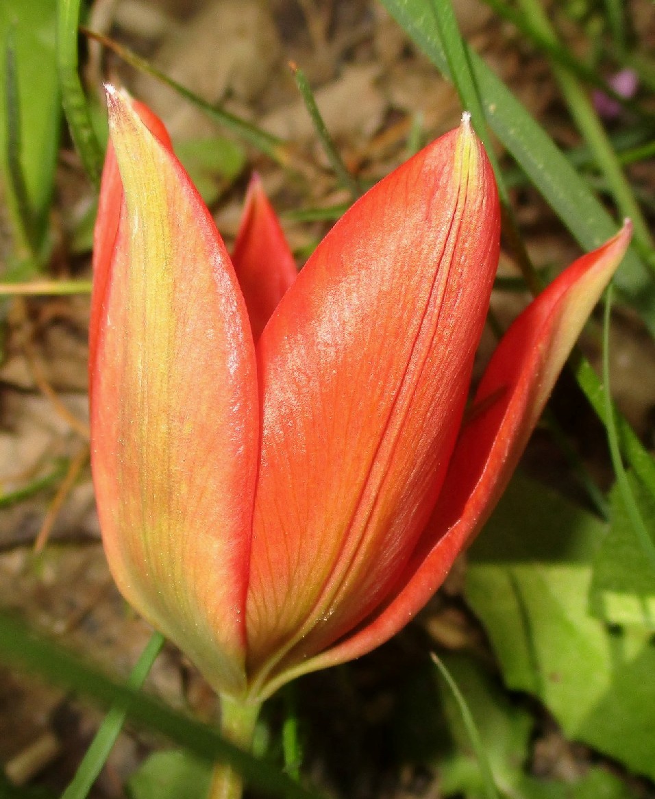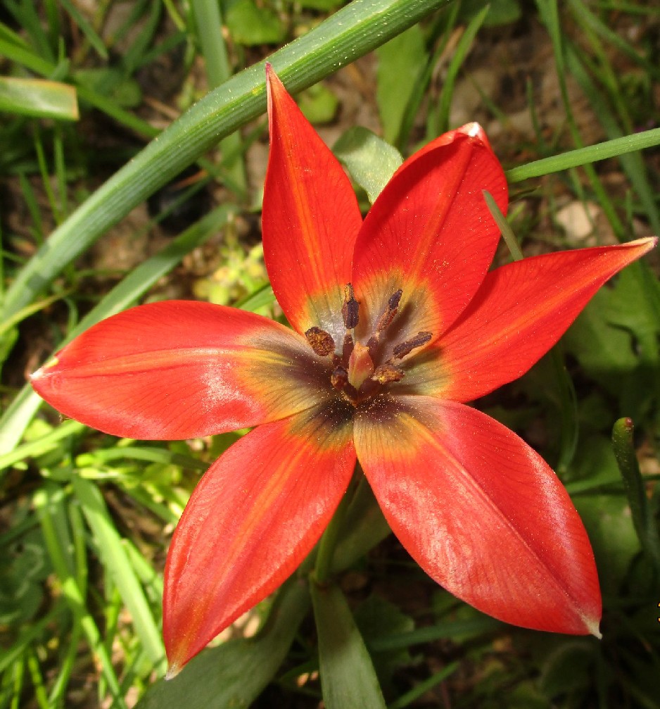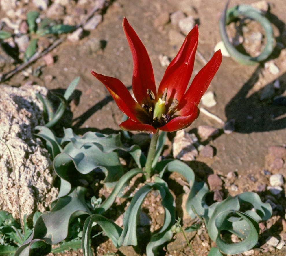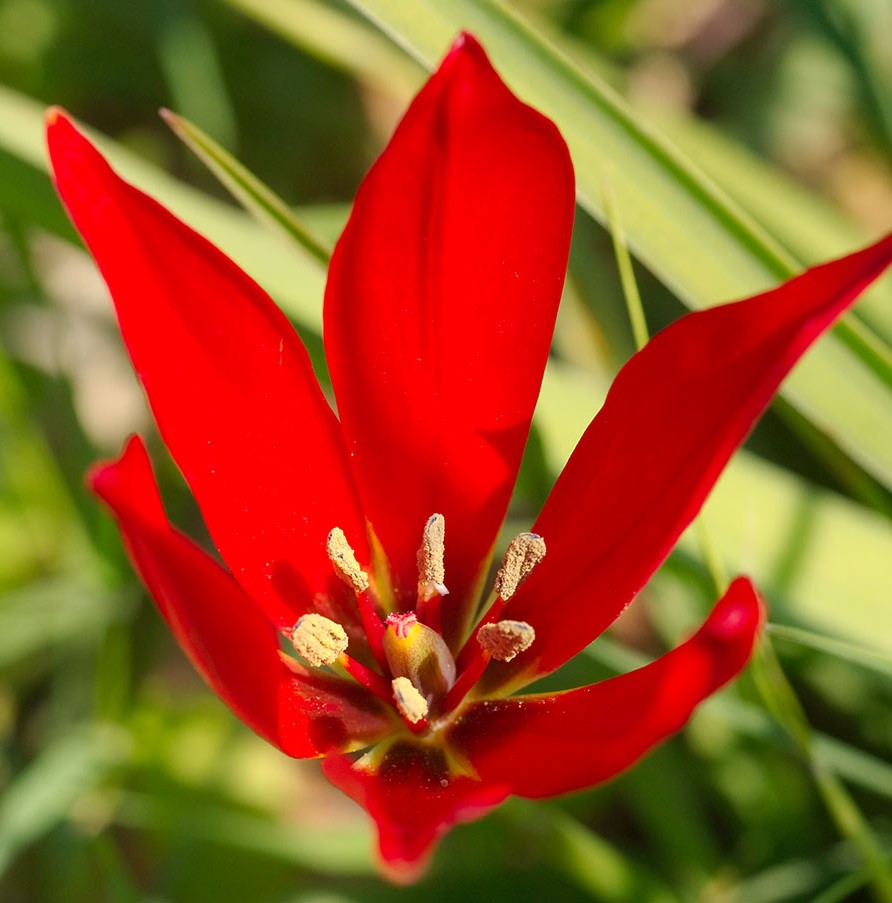 Tulipa - Blüten rot oder orange, Perigonblätter spitz, Filamente am Grund geschwollen und behaart