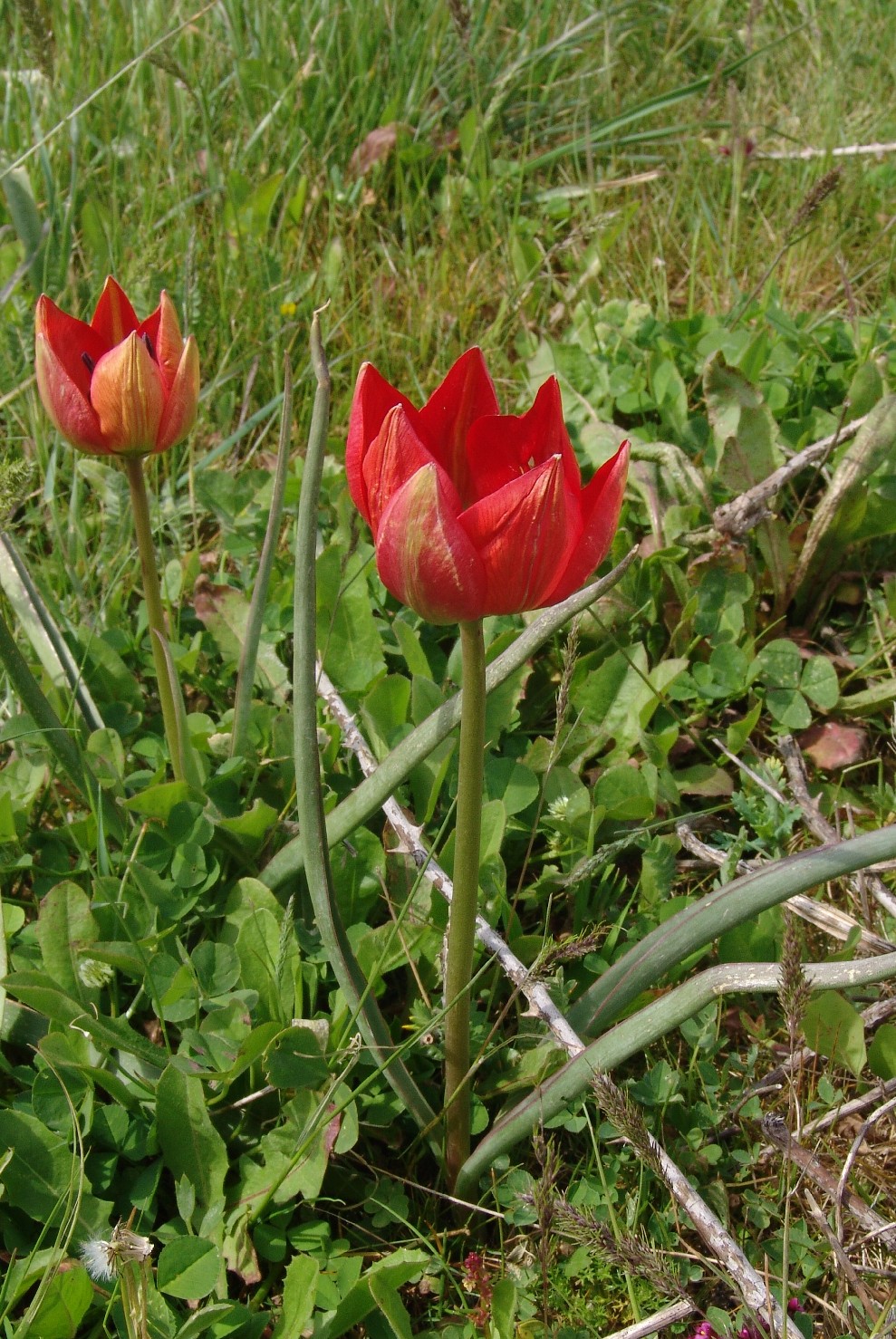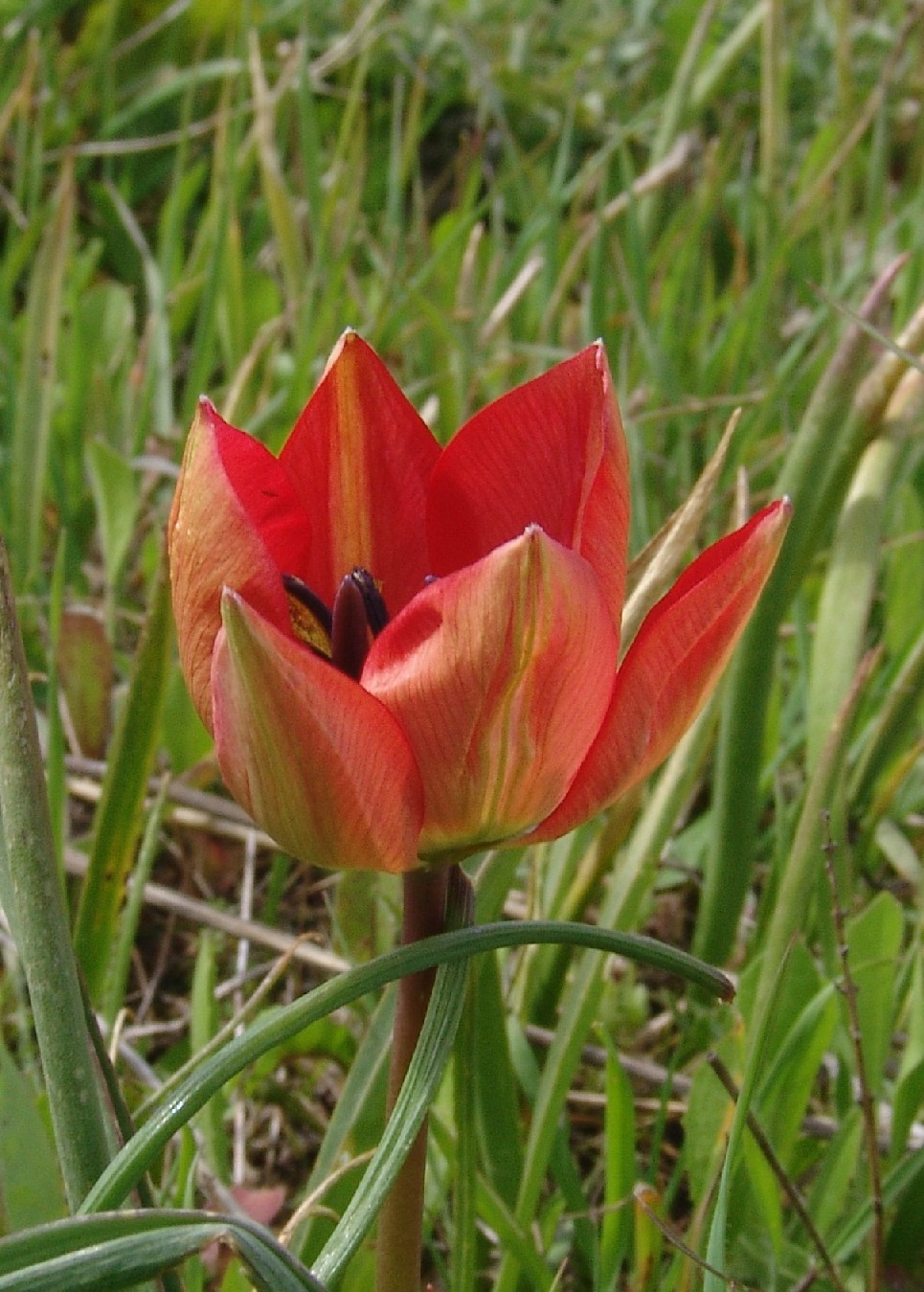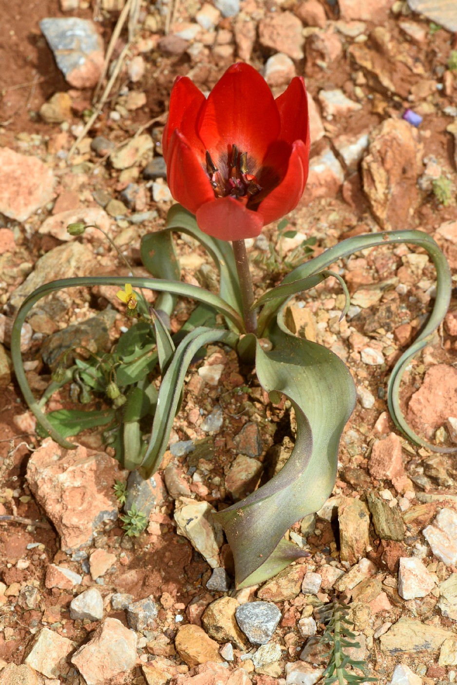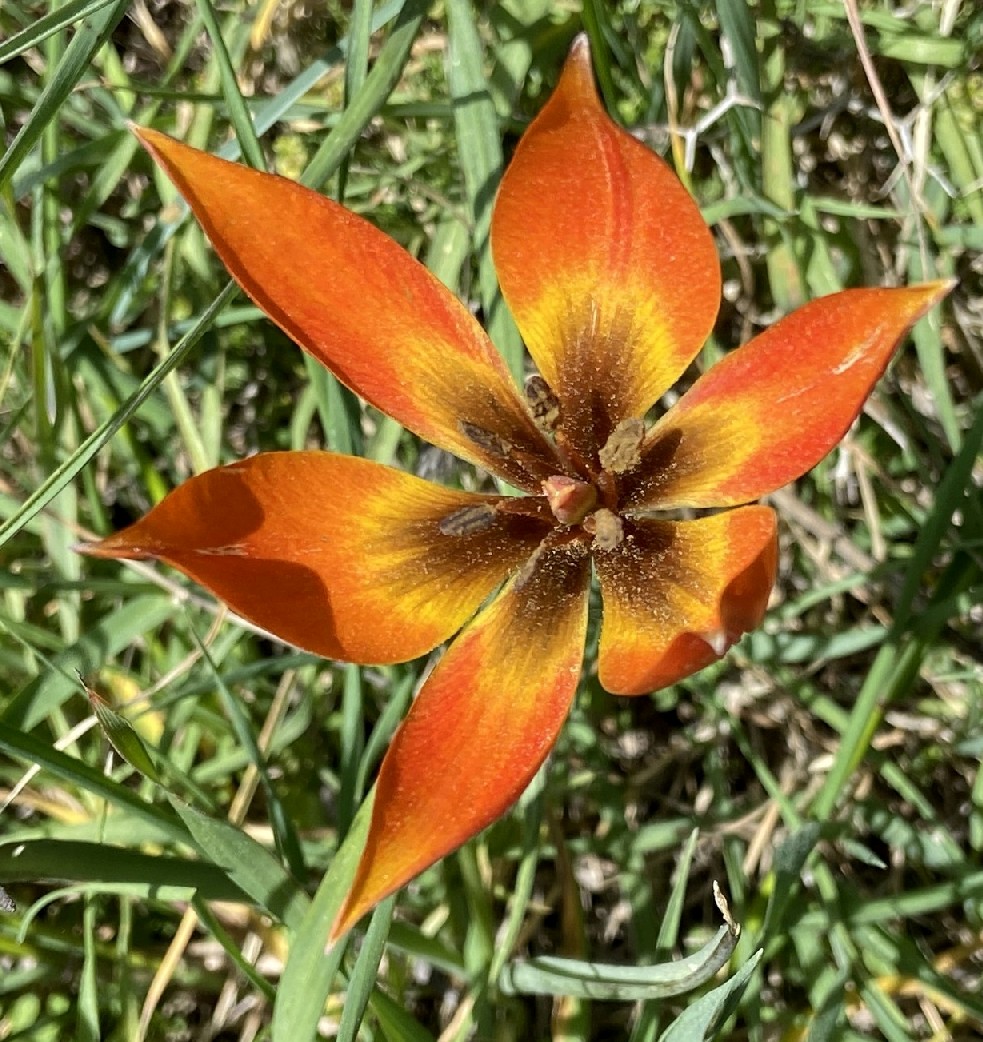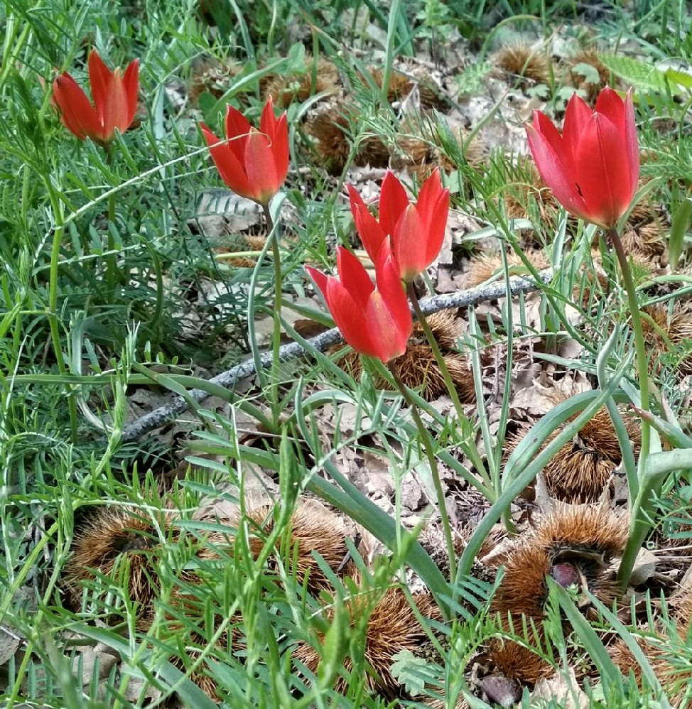 Tulipa - Blüten rot oder orange, Perigonblätter spitz, Filamente am Grund geschwollen und behaart