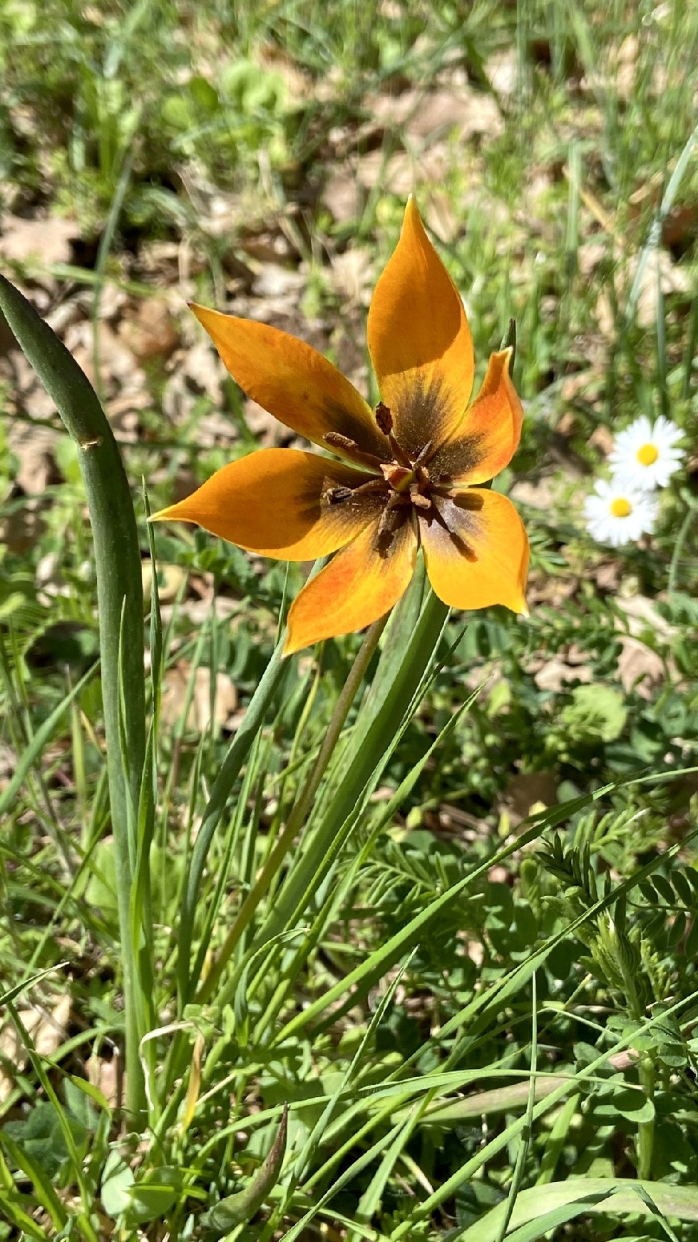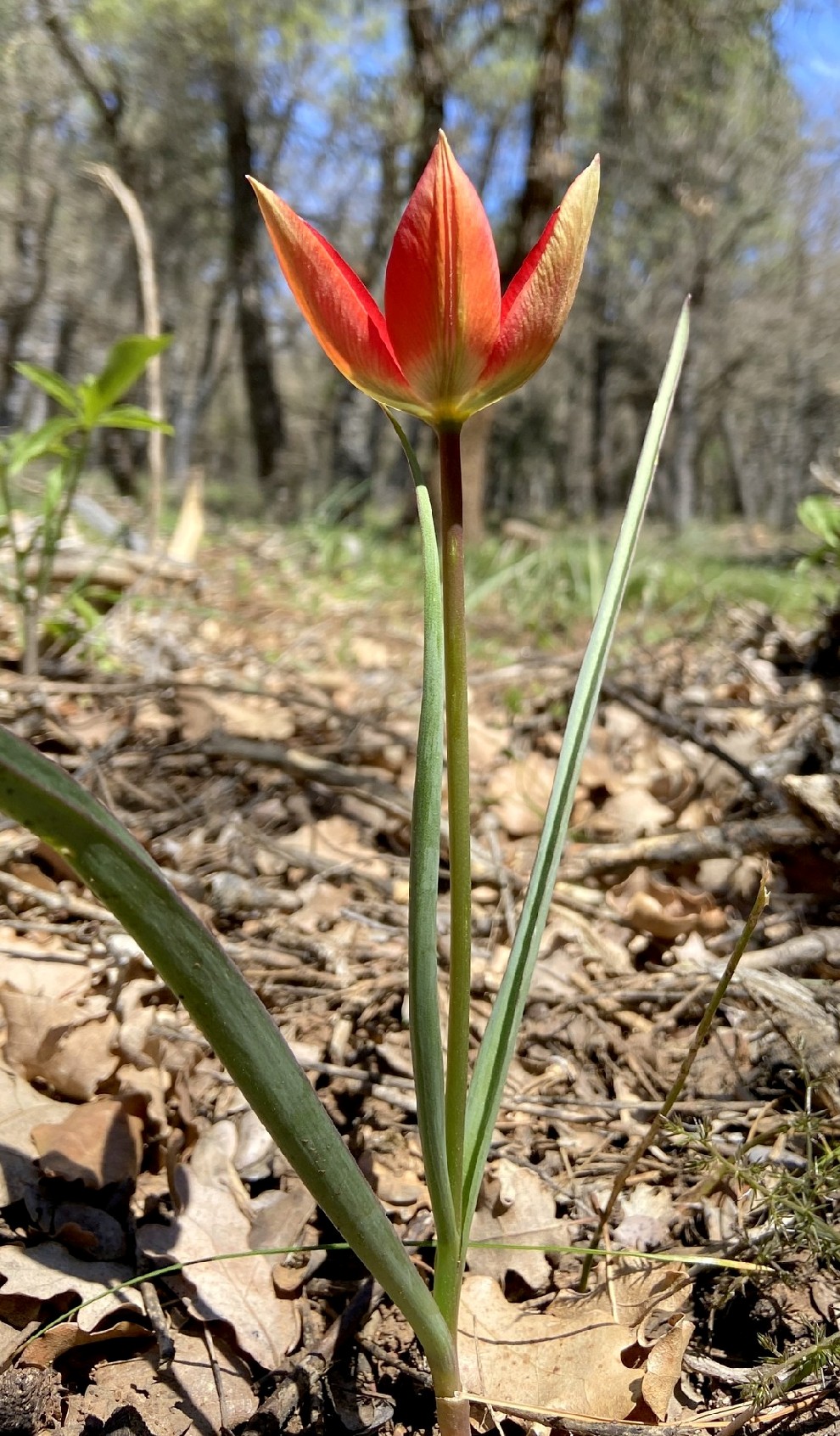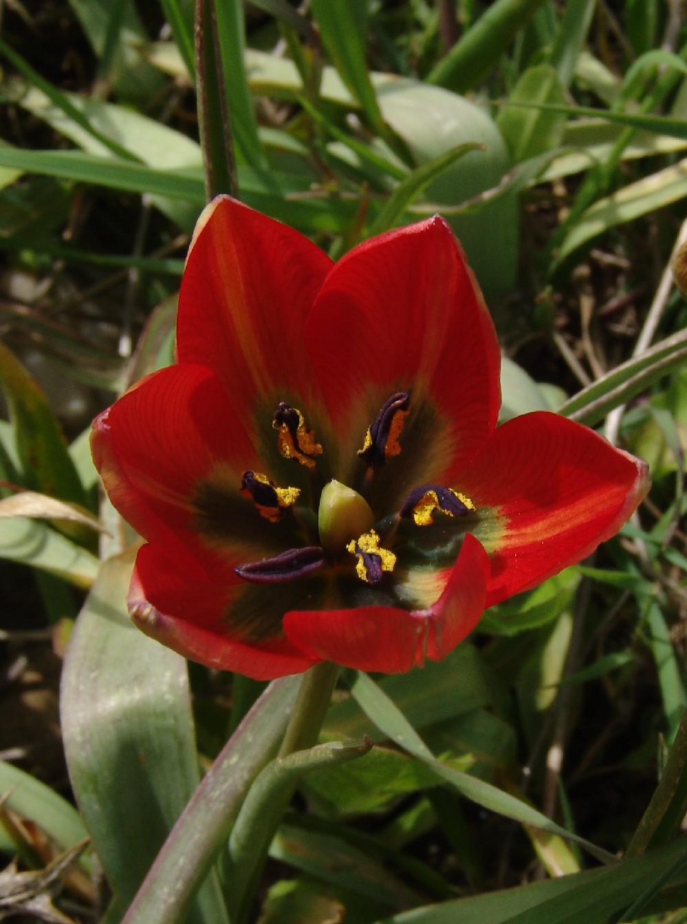 Perigonblätter spitz, am Grund verschmälert, die inneren 30 - 50 mm lang, 15 - 20 mm breit, Blätter linealisch, blaugrün, oft rinnig, ca. 10 mm breit