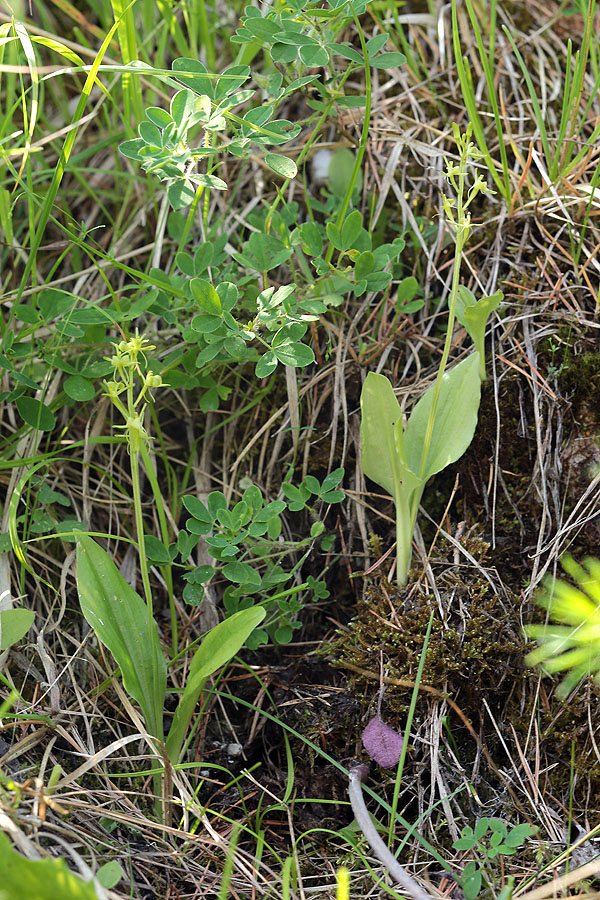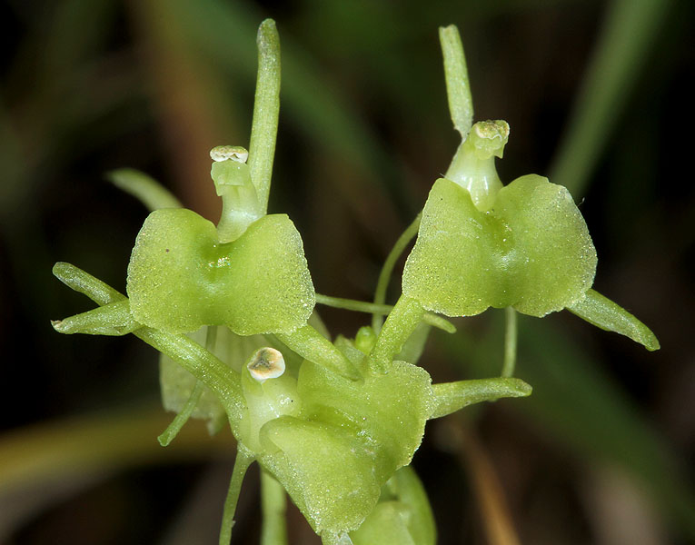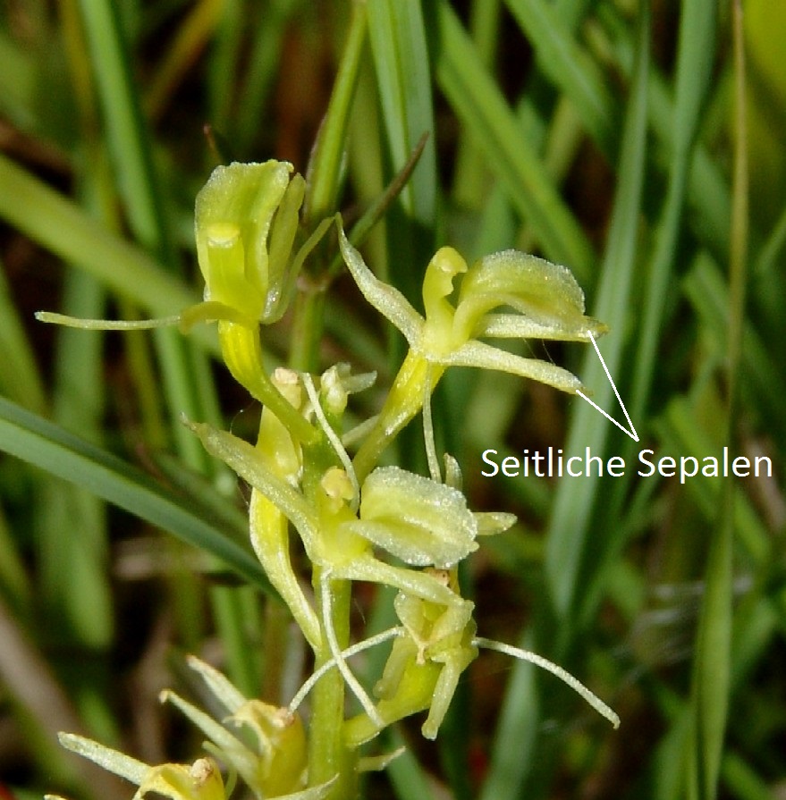 | Moorpflanze Blätter +/- sitzend Seitliche Sepalen +/- parallel unter der Lippe > 1
