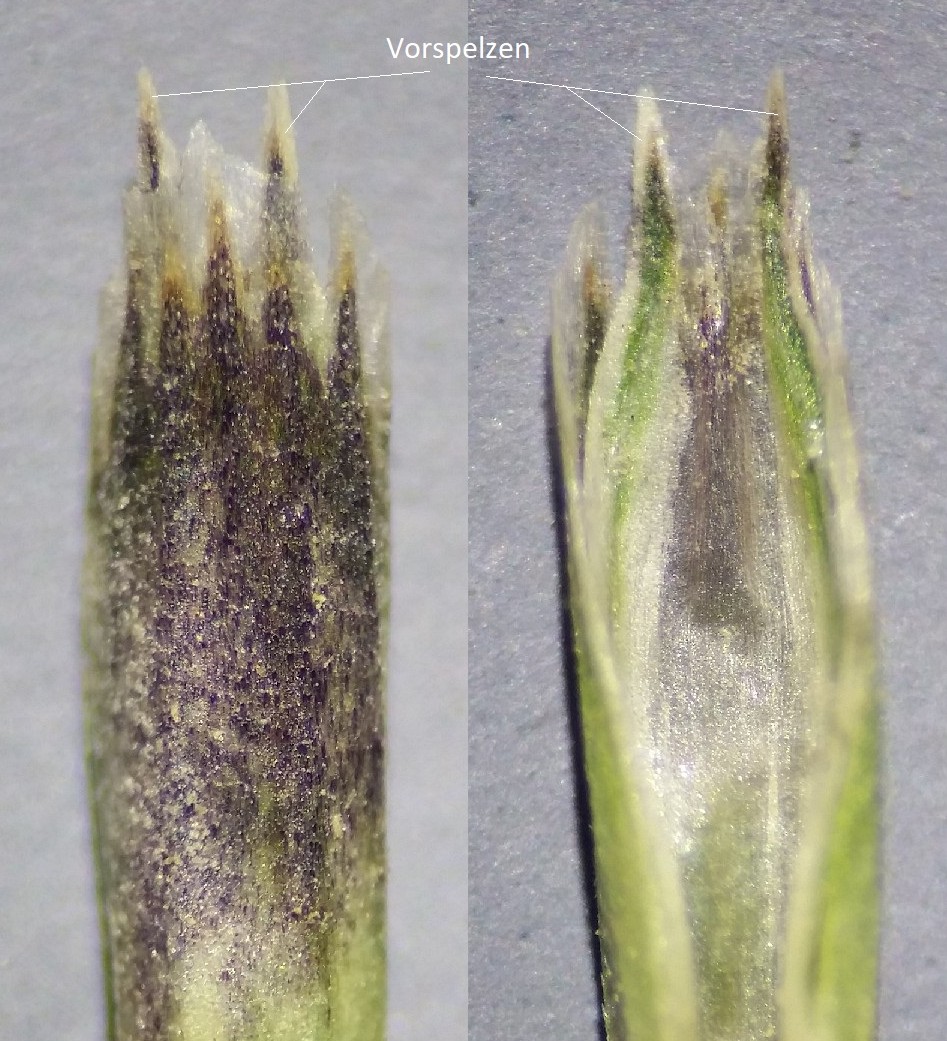 3 Deckspelze mit 7 gleich starken, nicht austretenden Adern, Vorspelzen die Deckspelzen nicht überragend